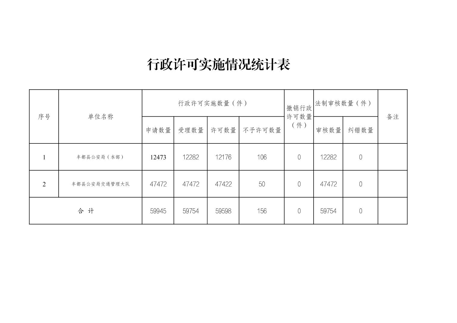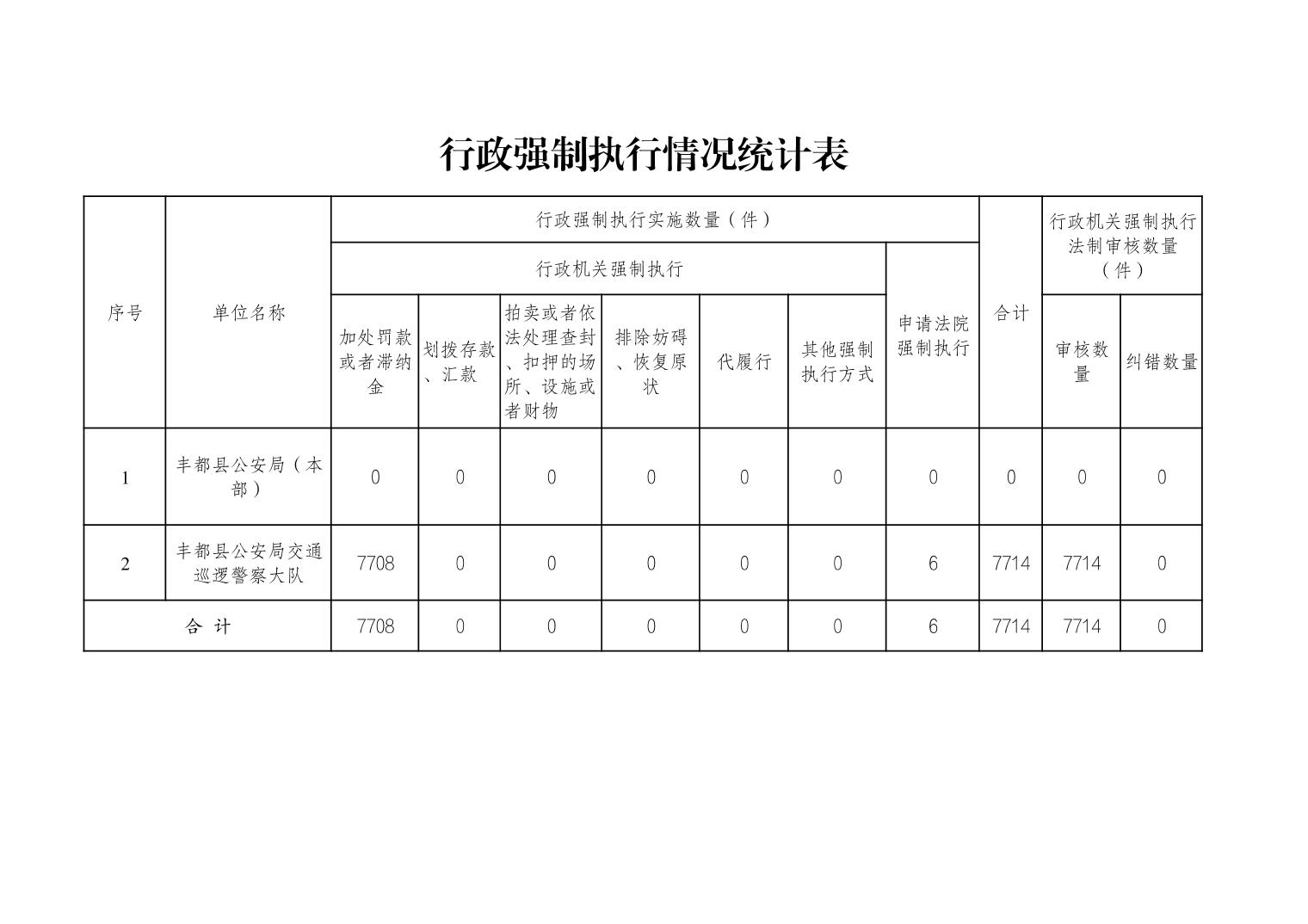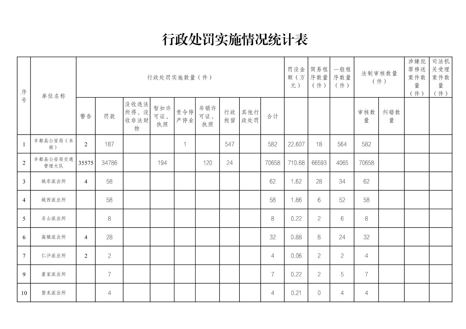 丰都县公安局2025年度行政执法数据统计表