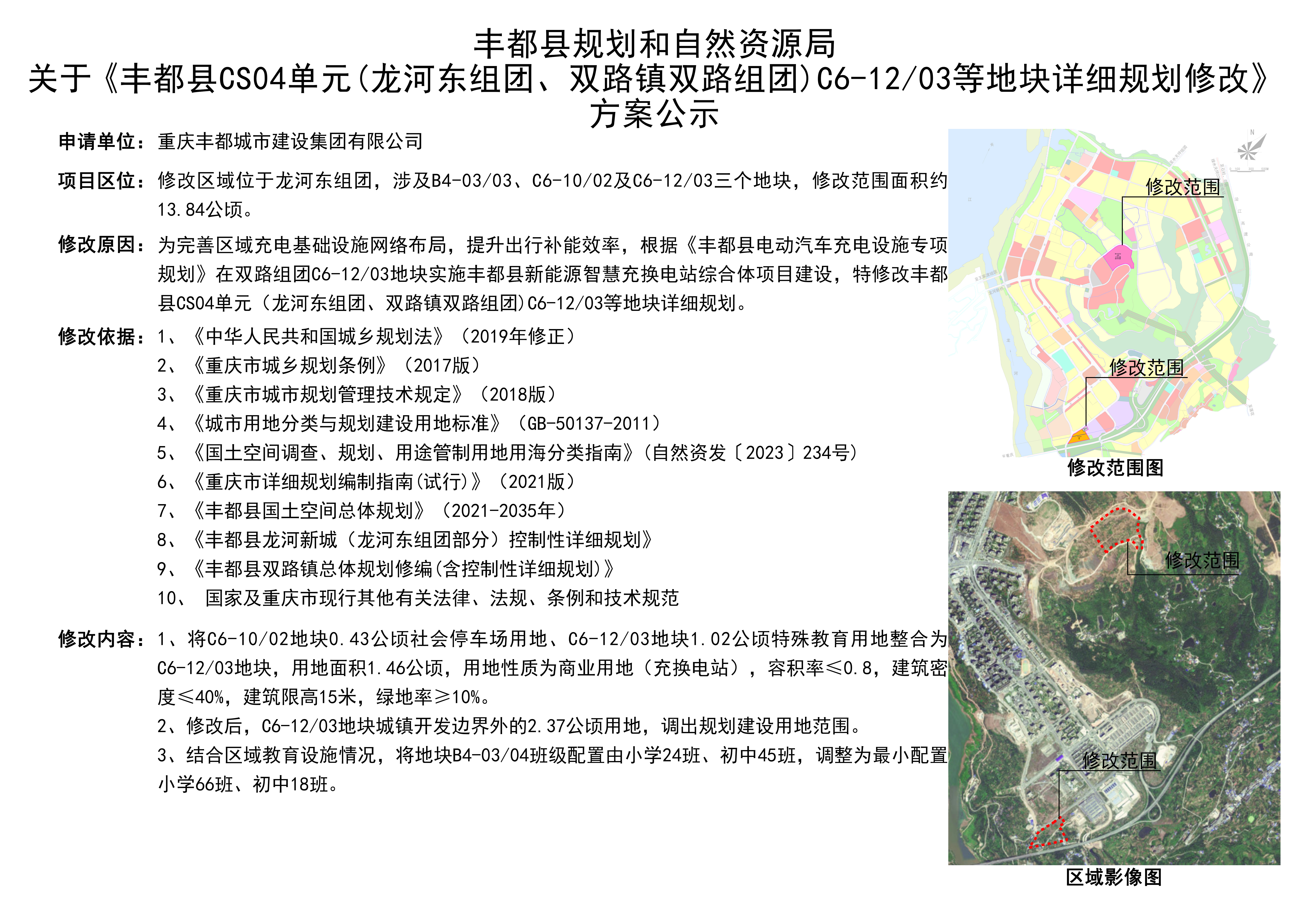 丰都县规划和自然资源局关于《丰都县CS04单元(龙河东组团、双路镇双路组团)C6-1203等地块详细规划修改》方案公示