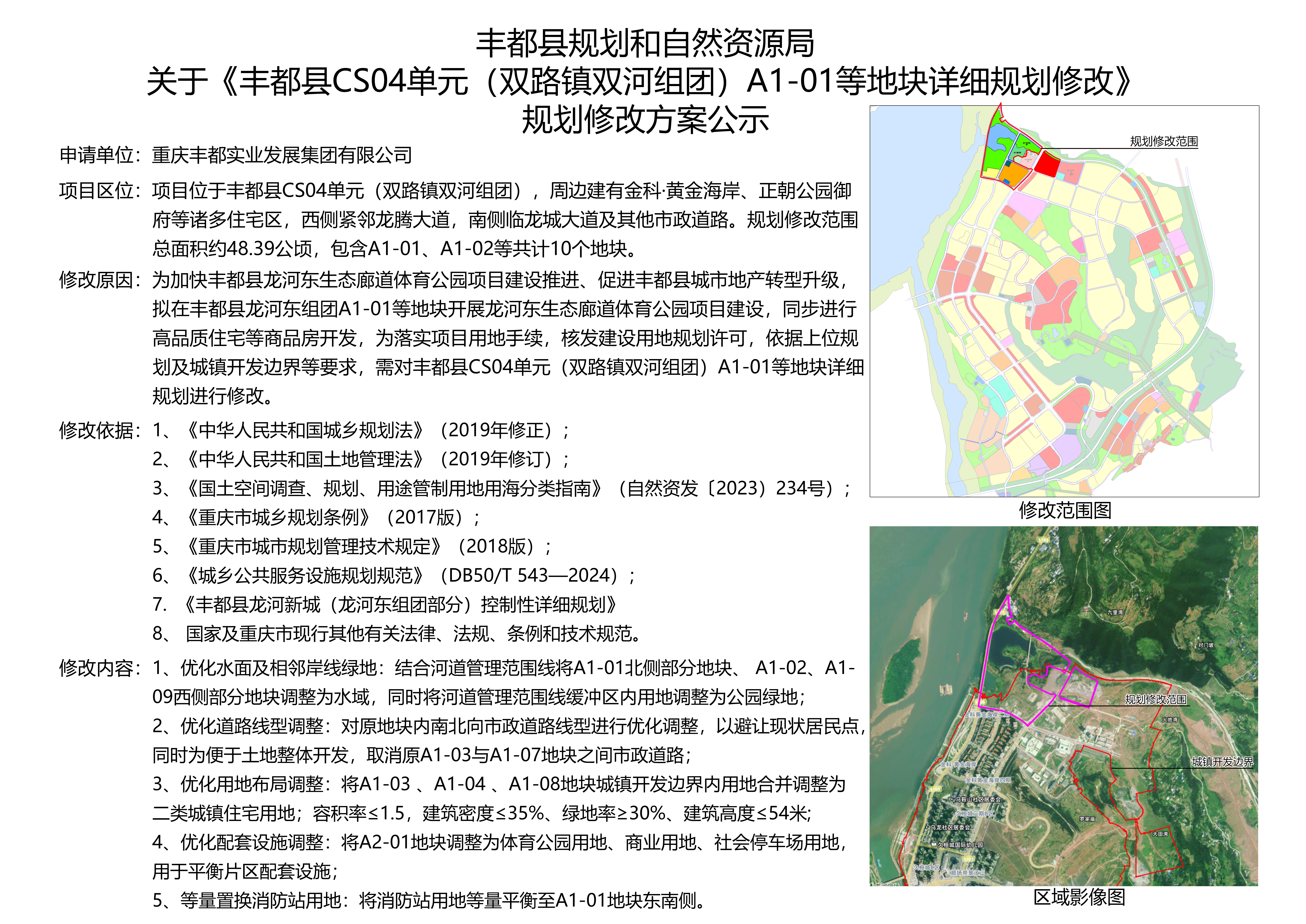 丰都县规划和自然资源局关于《丰都县CS04单元(龙河东组团)A1-01等地块详细规划修改方案》公示