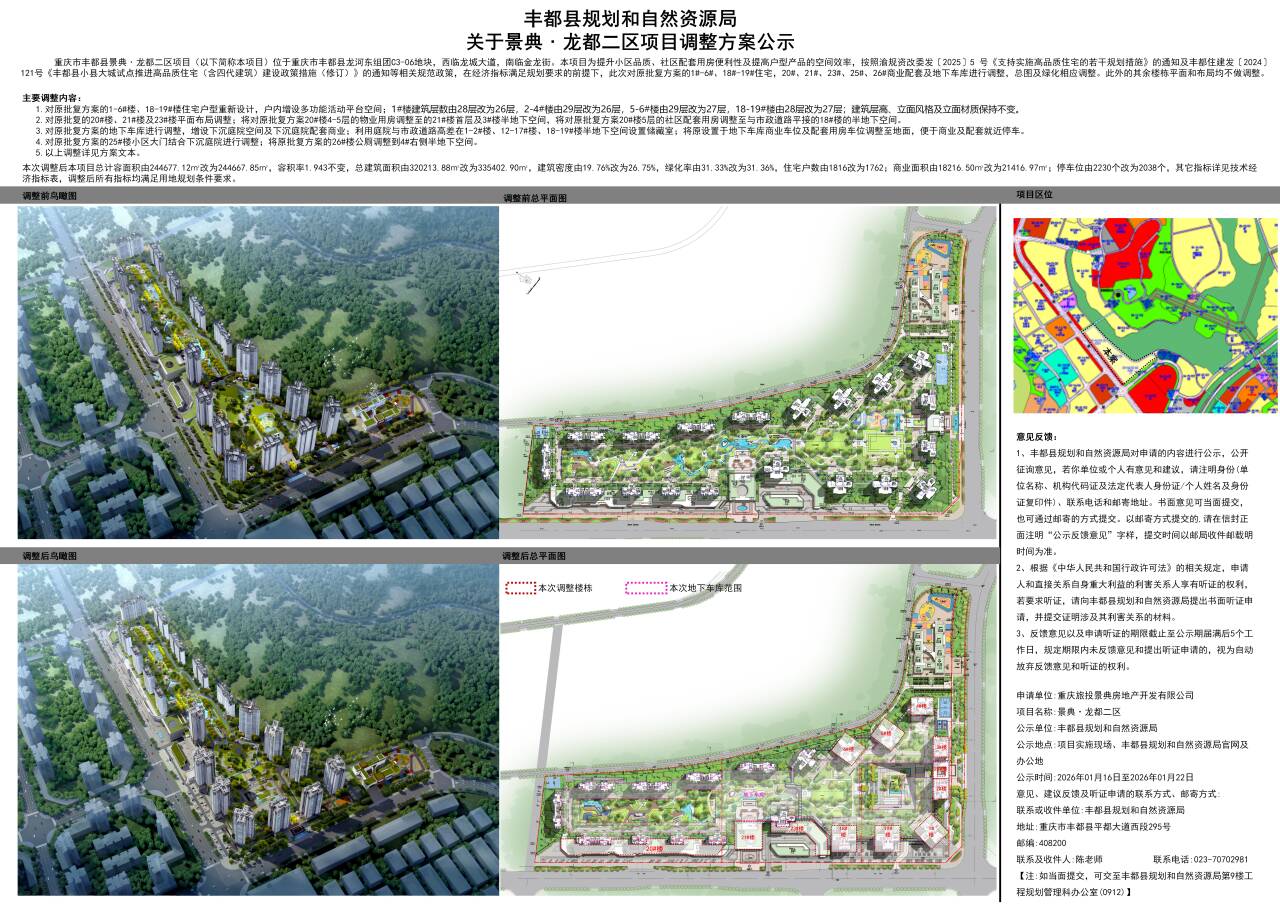 丰都县规划和自然资源局关于景典·龙都二区项目调整方案公示