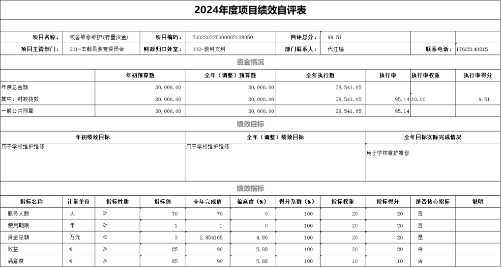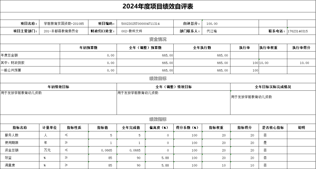 根据预算绩效管理要求,我单位对0个一级项目、20个二级项目开展了绩效自评,涉及财政拨款项目支出资金85.91万元,绩效自评表附后文。