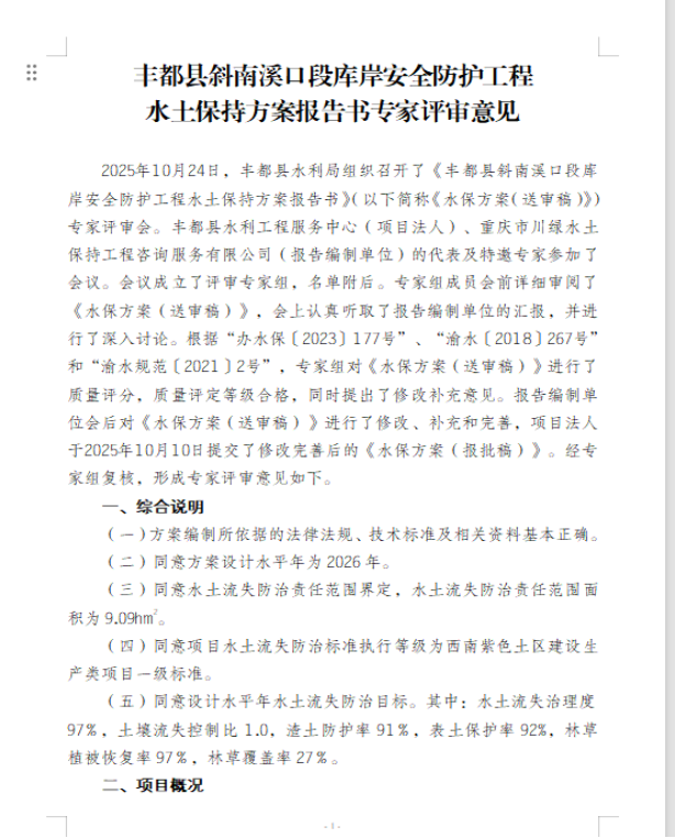 2.丰都县斜南溪口段库岸安全防护工程水土保持方案报告书专家评审意见