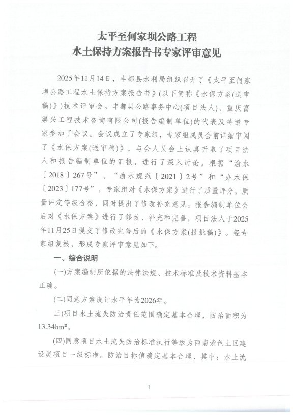 2.太平至何家坝公路工程水土保持方案报告书专家评审意见