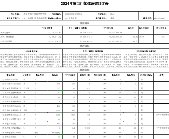 丰都县文化和旅游发展委员会2024年度决算公开说明