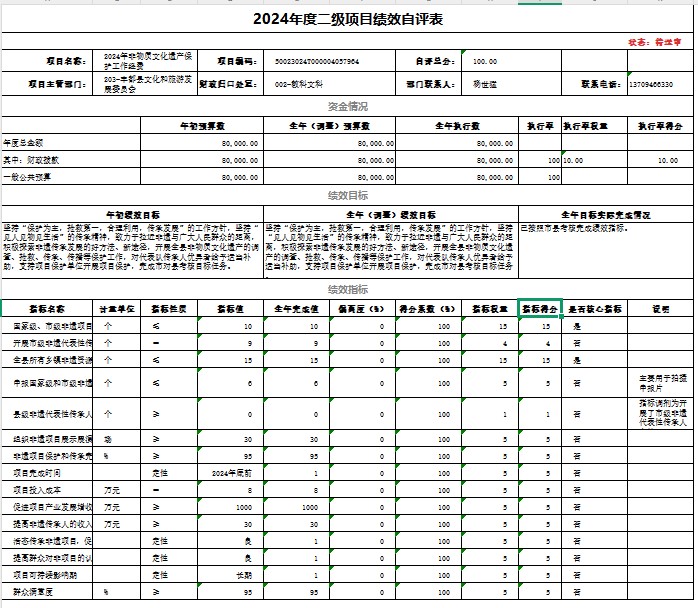 2024年非物质文化遗产保护工作经费绩效自评