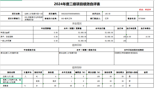 创新人才安家补助绩效自评