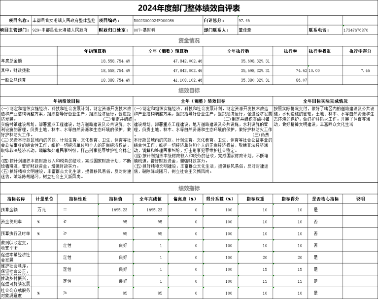 丰都县仙女湖镇人民政府2024年度决算公开说明