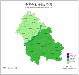 2024年2月1日16时至2月2日16时我县小雨。最大降雨量为4.4毫米(都督沙坪村)。三建出现7级大风,极大风速13.9米/秒(三建,02日11时),最低气温-2.4~8.9℃,最高气温0.4~12.7℃。丰都国家基本站雨量0.4mm,最低气温7.6℃,最高气温10.3℃。