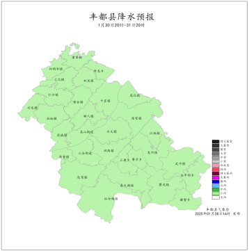 2025年1月27日16时至1月28日16时我县多云到晴,最低气温-8.3~4.9℃,最高气温2.0~16.1℃。丰都国家基本站最低气温3.3℃,最高气温13.4℃。