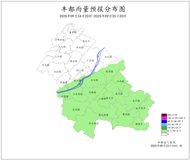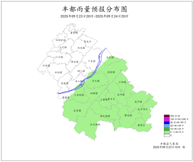 2025年9月22日16时至9月23日16时我县阴天有阵雨。最大降雨量为14.2mm(青龙青天);最低气温13.8(仙女湖南天湖景区)~23.4℃,最高气温16.2~32.2℃(高家镇航道)。丰都国家基本站雨量3.9mm,最低气温21.4℃,最高气温29.9℃。