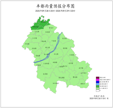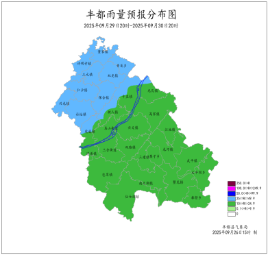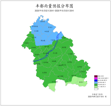 2025年9月19日16时至9月26日16时我县晴雨相间。最大周累计降雨量为66.3mm(都督沙坪村)。最低气温12.0(南天湖景区)~20.9℃,最高气温19.4~35.6℃(三元何家坝)。双路、三建、丰都、仙女湖、武平、龙河出现7级大风,极大风速15.9米/秒(三建,21日11时)。丰都国家基本站周累计降雨量34.0mm,最低气温18.9℃,最高气温30.4℃。