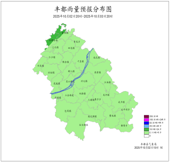 2025年10月1日16时至10月2日16时我县阴天间多云,局地分散阵雨。最大降雨量为0.4mm(太平坝);最低气温16.2(南天湖景区)~26.4℃,最高气温18.7~35.4℃(名山镇(航道))。仙女湖、三建、武平、南天湖出现7-9级大风,极大风速24.4米/秒(武平峰子山,1日18时)。丰都国家基本站最低气温24.9℃,最高气温32.2℃。