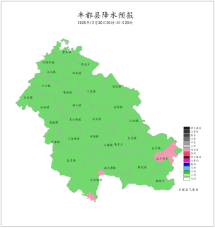 2025年12月29日16时至12月30日16时我县阴天有小雨。最大降雨量为0.6mm(保合新院子);最低气温1.3 (南天湖景区)~10.7℃,最高气温3.3~13.1℃(龙孔凤凰村)。丰都国家基本站最低气温9.0℃,最高气温10.9℃。