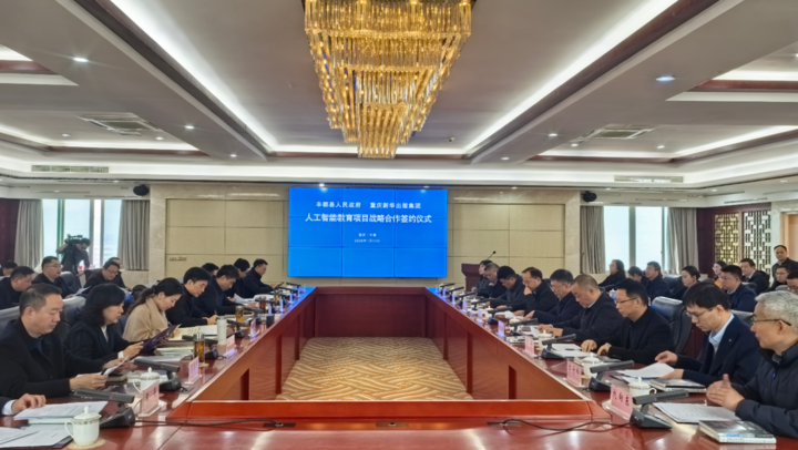 1月13日,丰都县人民政府与重庆新华出版集团举行人工智能教育项目战略合作签约仪式。丰都县委书记张国忠,重庆市教委二级巡视员蔡理,重庆新华出版集团党委书记、董事长李斌出席签约仪式并讲话。丰都县委副书记、县长唐守渊主持签约仪式。
