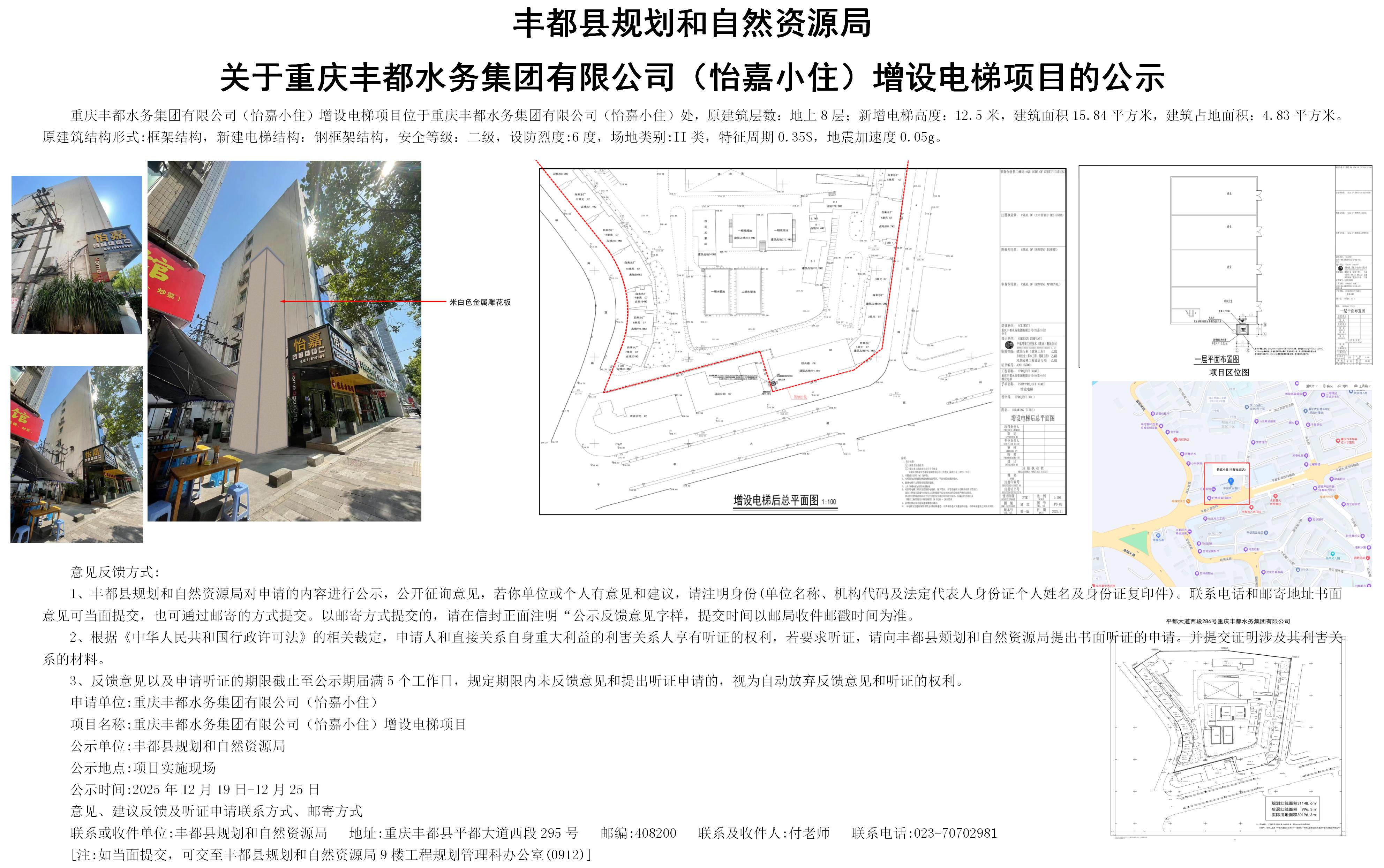 丰都县规划和自然资源局关于重庆丰都水务集团有限公司(怡嘉小住)增设电梯项目的公示