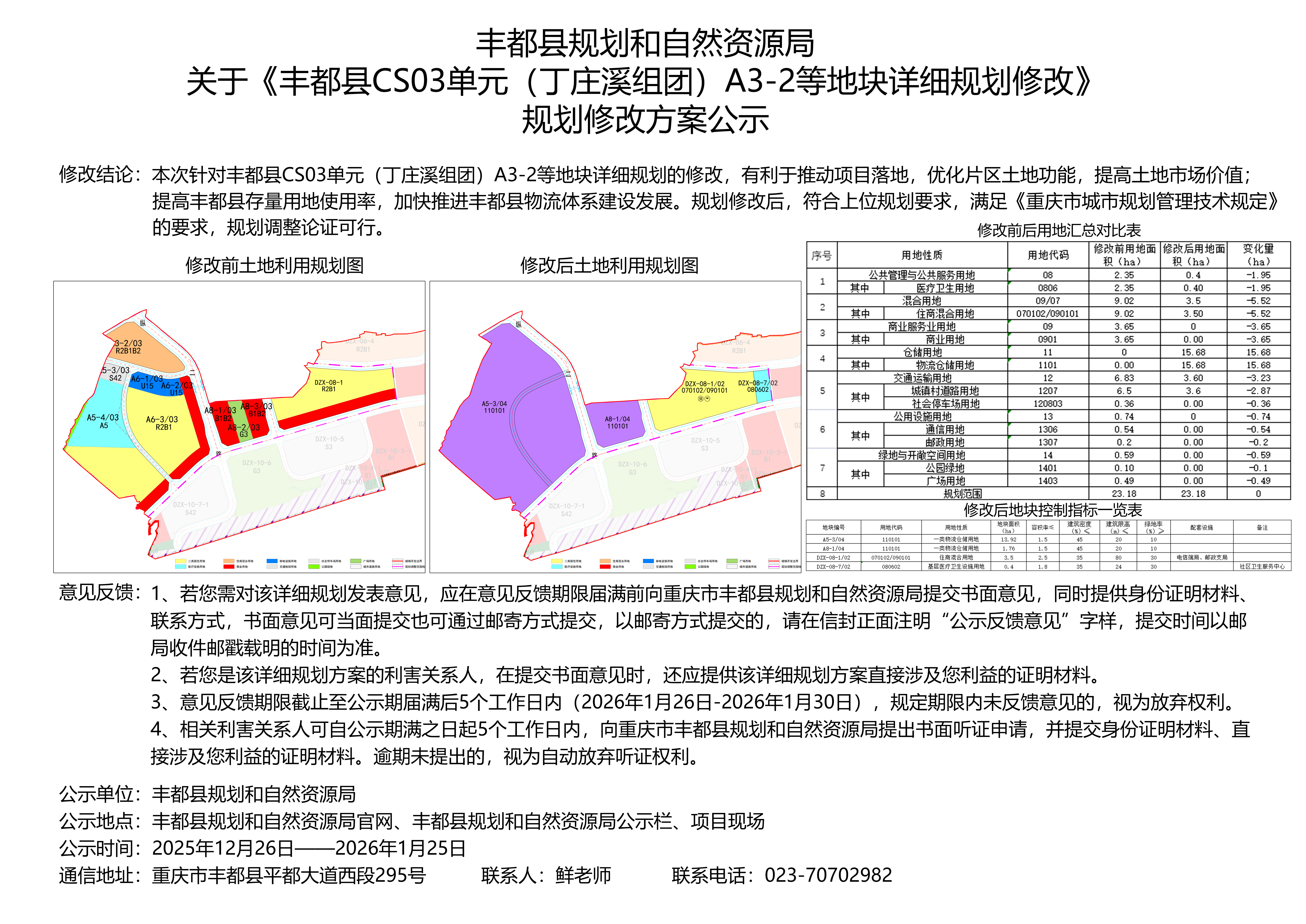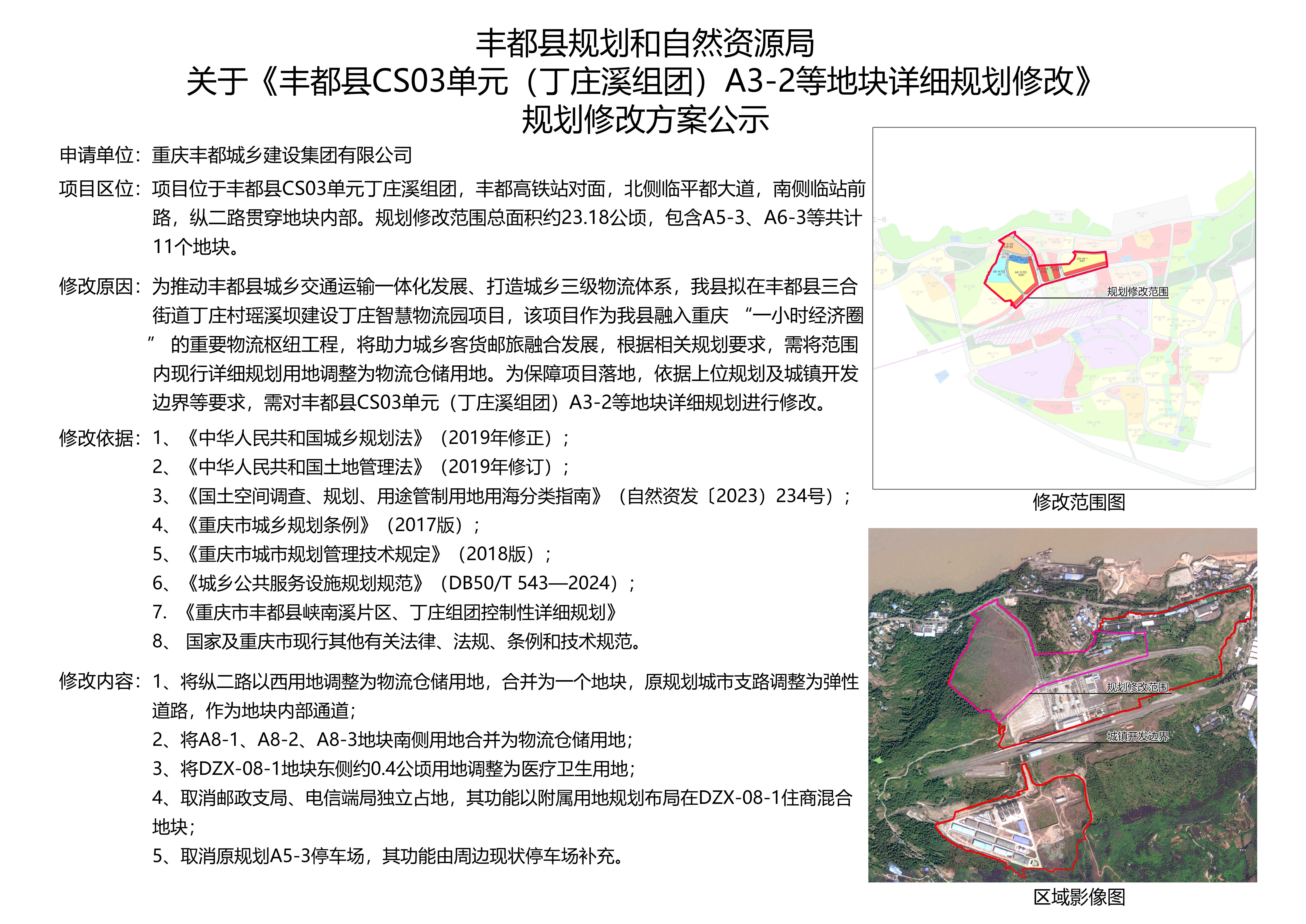 丰都县规划和自然资源局关于《丰都县CS03单元(丁庄溪组团)详细规划修改》规划修改方案公示
