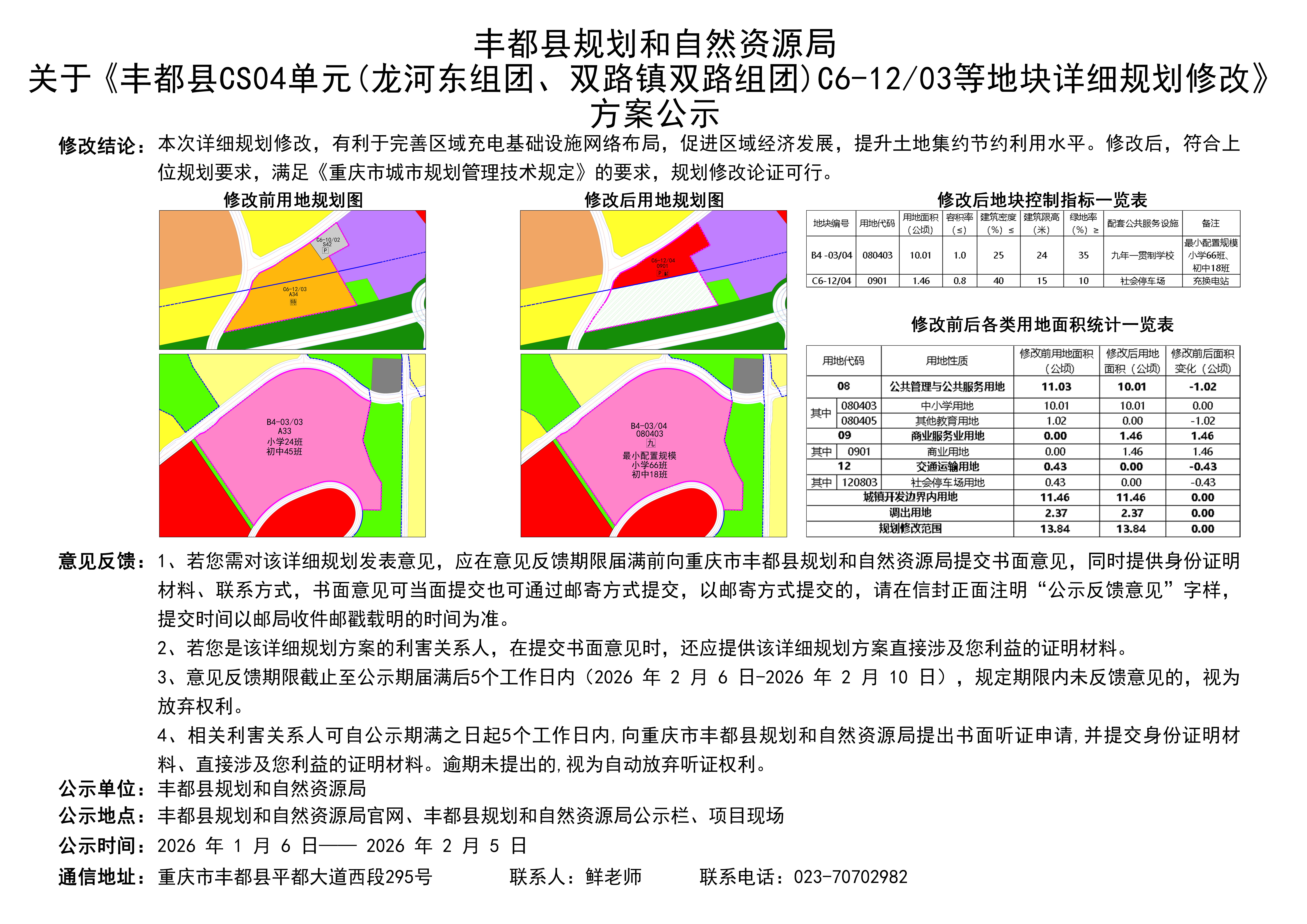 丰都县规划和自然资源局关于《丰都县CS04单元(龙河东组团、双路镇双路组团)C6-1203等地块详细规划修改》方案公示