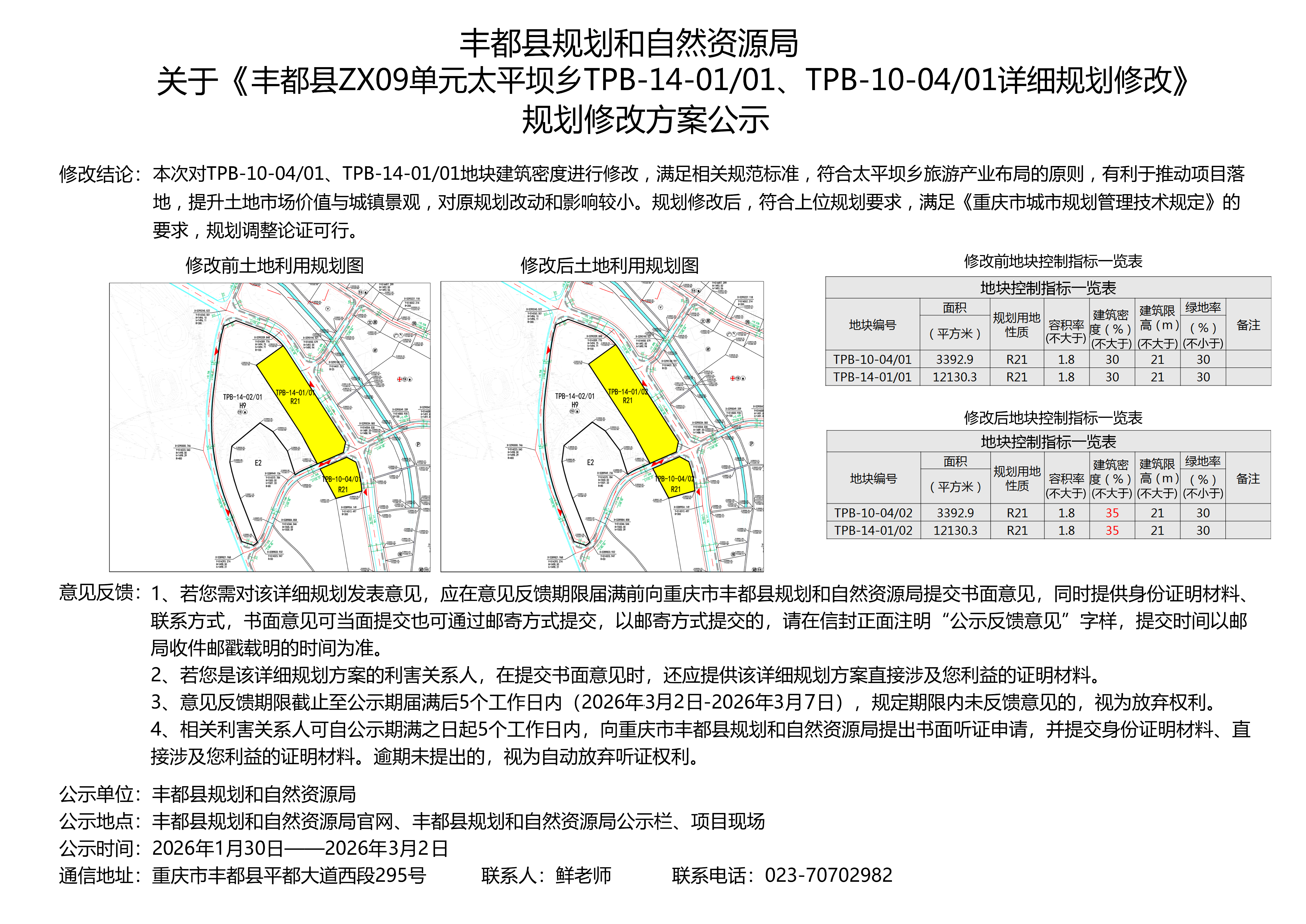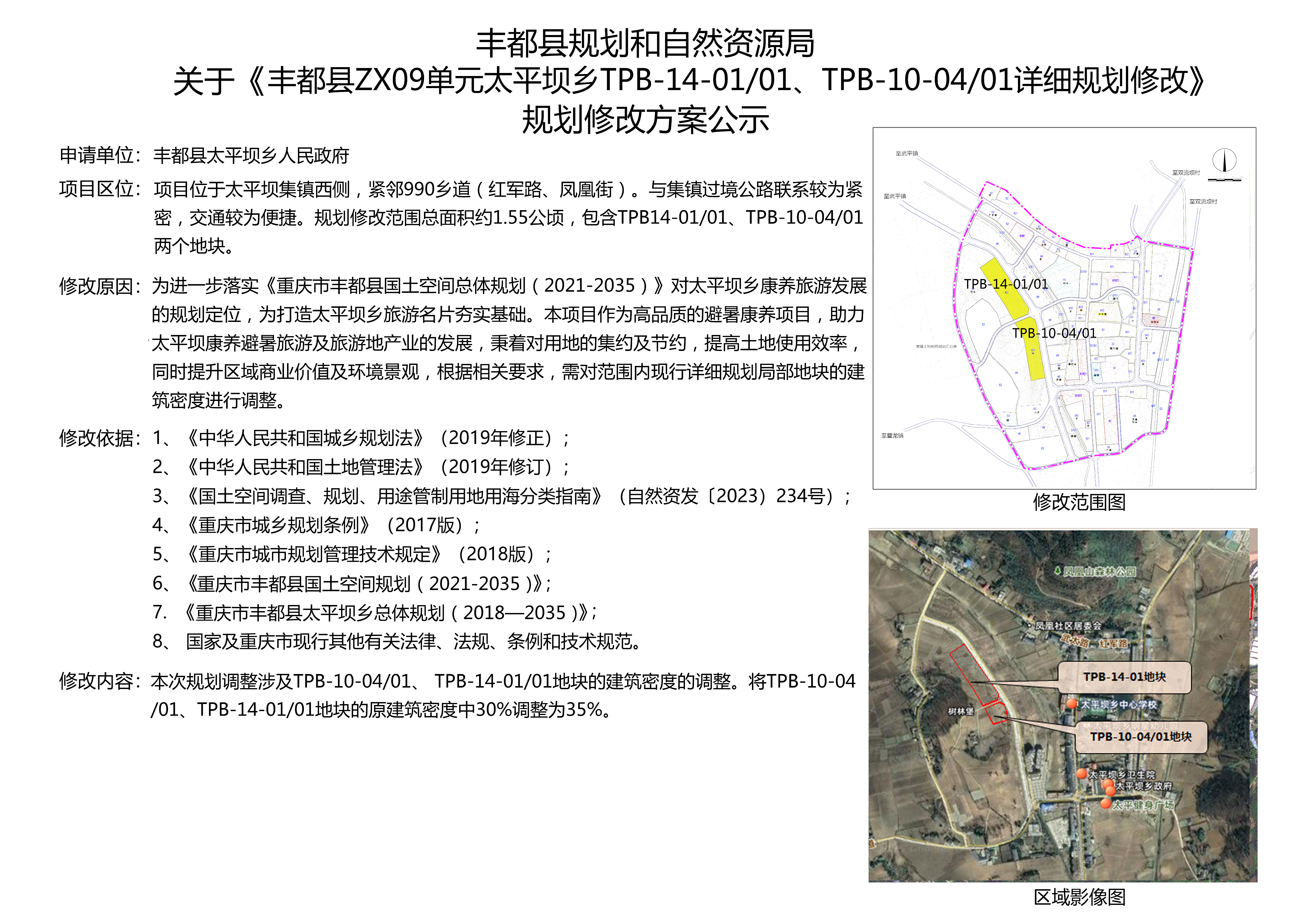 丰都县规划和自然资源局关于《丰都县太平坝详细规划修改》规划修改方案公示