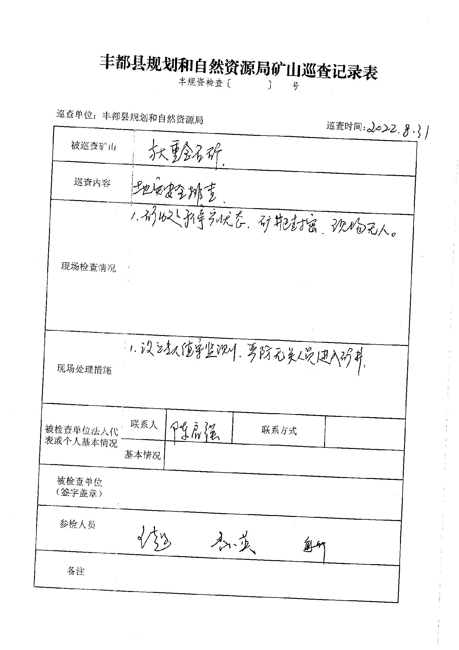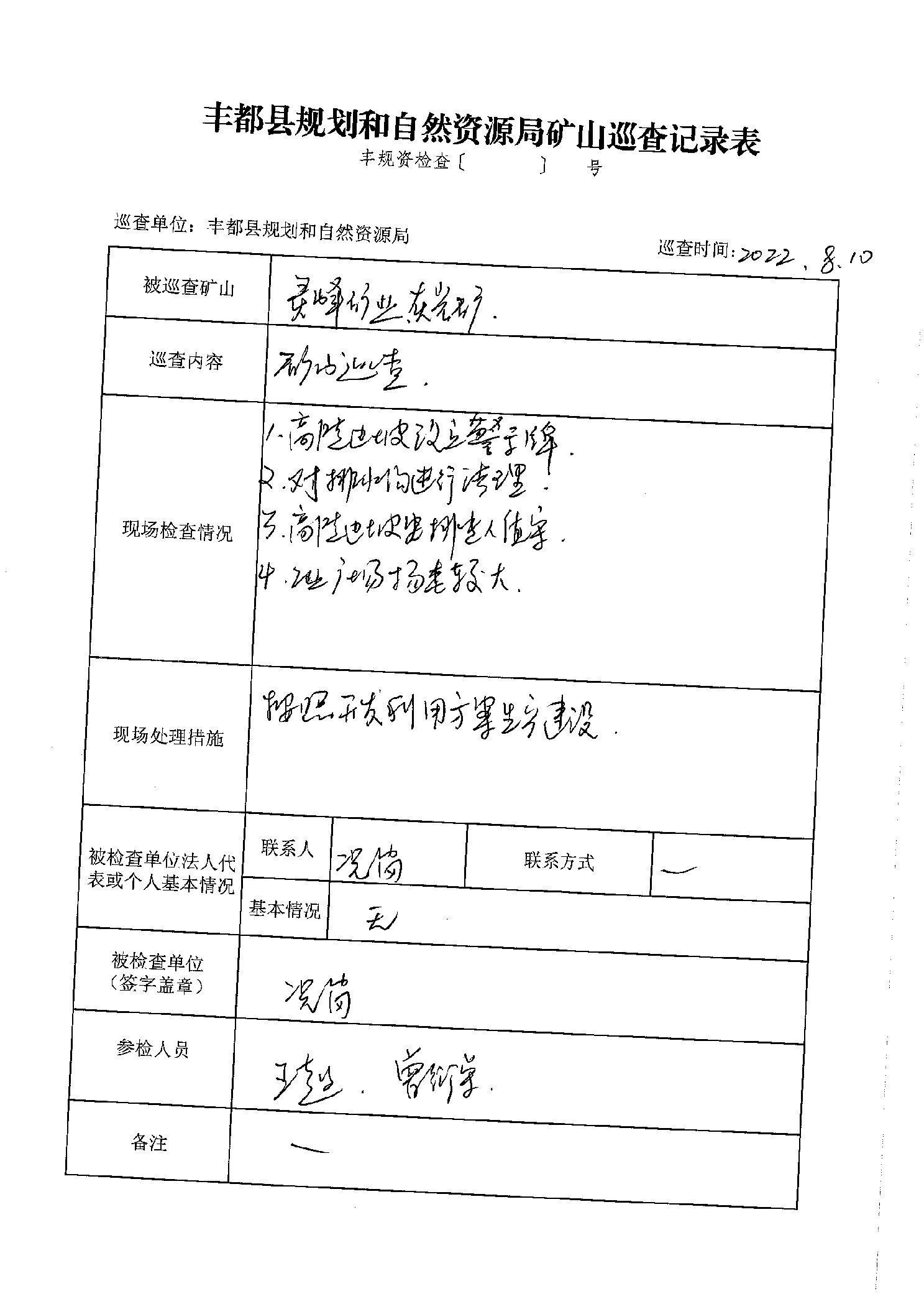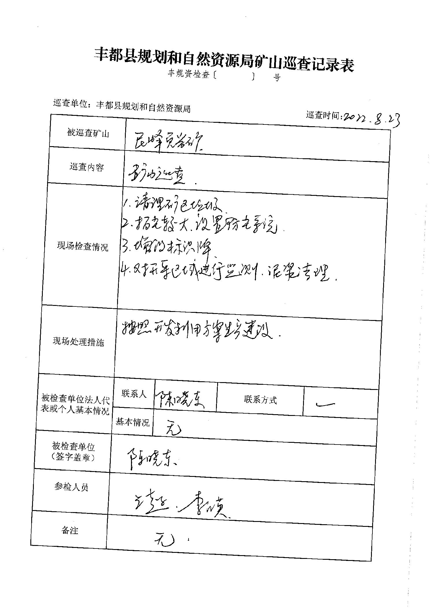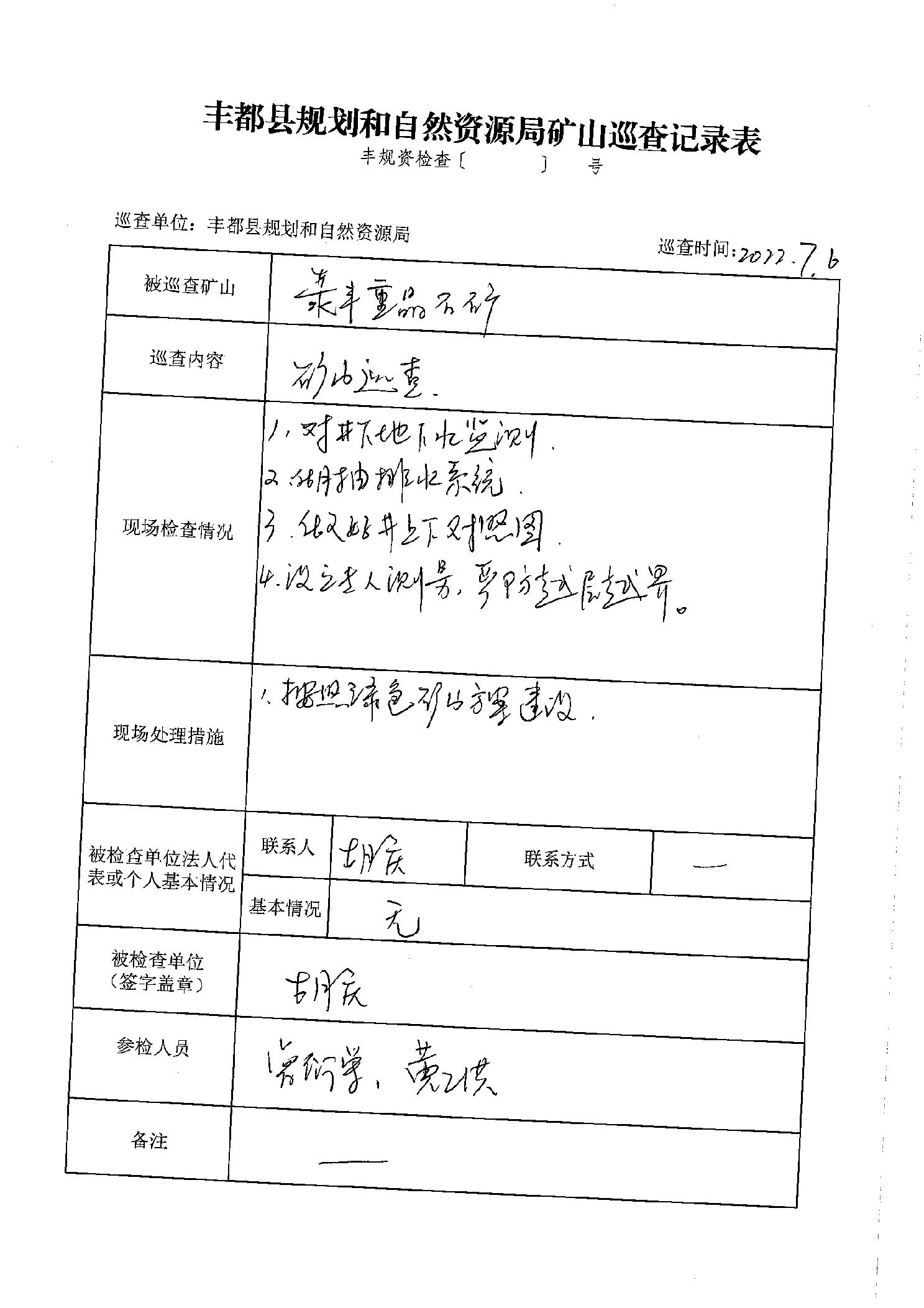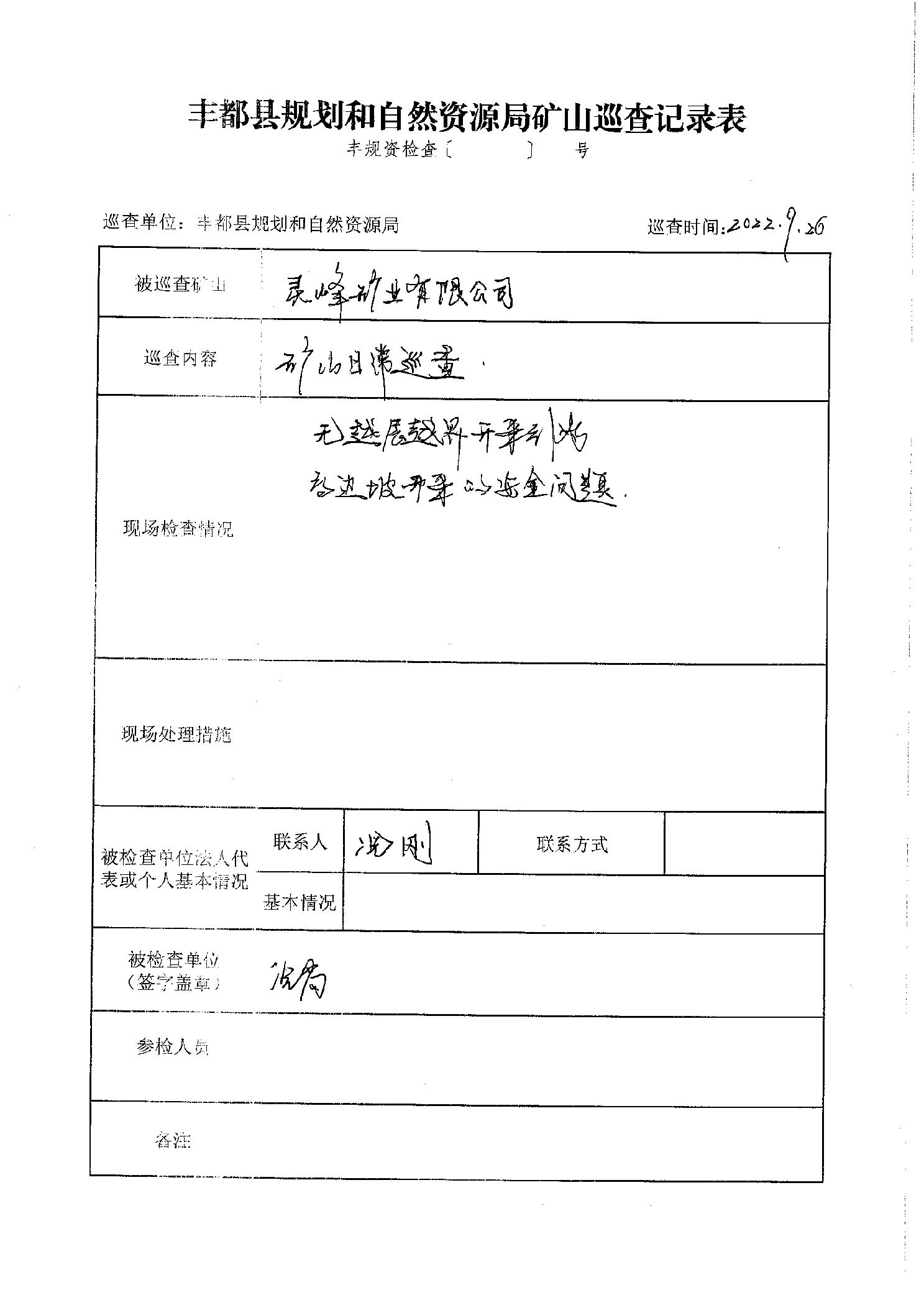 2022年丰都县规划和自然资源局矿山巡查记录表