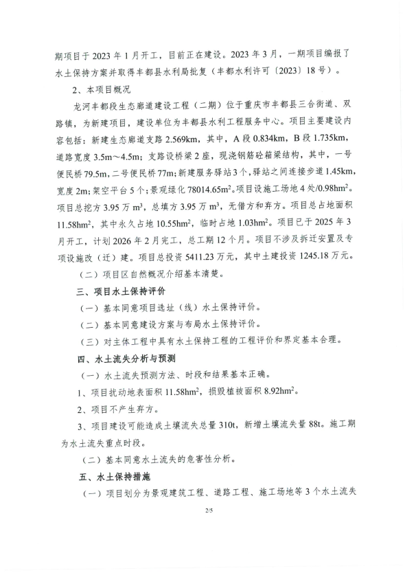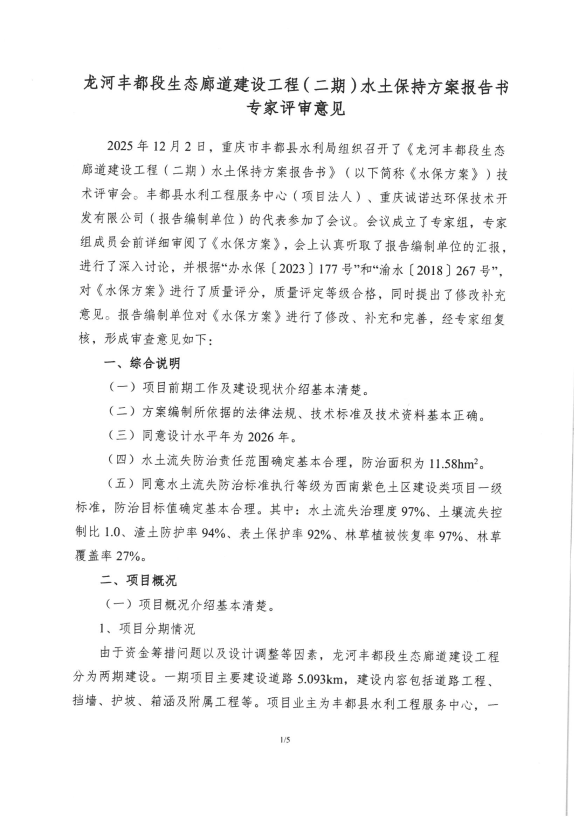 2.龙河丰都段生态廊道建设工程(二期)水土保持方案报告书专家评审意见