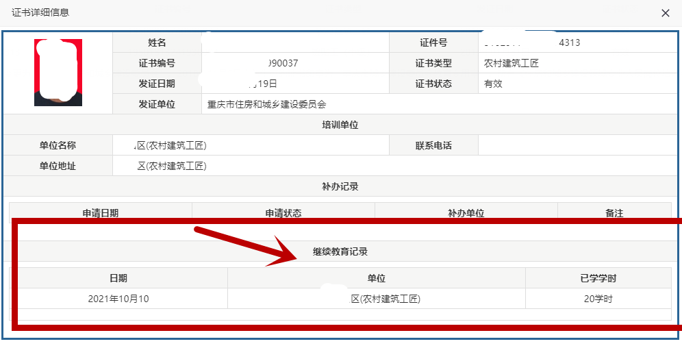 3.学习完成后,可以在“重庆市住房城乡培训教育管理系统”上查询到已经继续教育的信息。