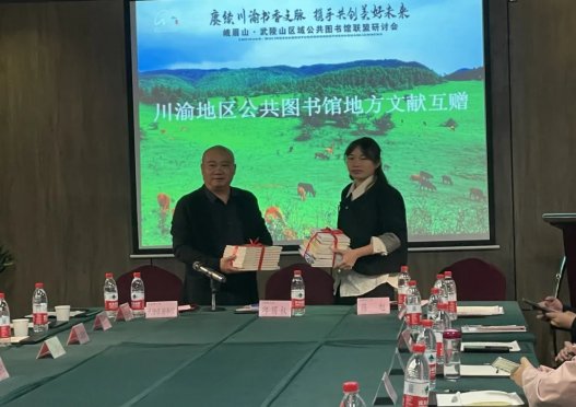 16日下午,峨眉山 • 武陵山区域公共图书馆联盟研讨会在仙女山大卫营度假酒店会议室召开,此次会议主题是“赓续川渝书香文脉 携手共创美好未来”,会议做了2024年工作总结暨2025年工作安排,开展了“发挥公共图书馆作用,助力成渝双城经济圈建设”主题研讨,四川省乐山市图书馆等作了交流发言,随后,川渝地区图书馆代表互赠地方文献。丰都向乐山12个公共图书馆分别赠送《幽都志异》、《中国共产党丰都县历次代表大会纪实》《平都山》地方文献。