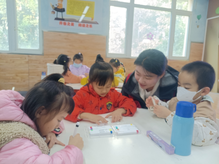 接着,刘老师利用水能反射光的原理,带领孩子们开展了“颜色消失了”的小实验。孩子们先在纸上画出自己喜爱的图案,认真涂上颜色,再把画纸装入塑料袋,沿着图案轮廓仔细描摹。当塑料袋被垂直放入水中时,大家惊喜地发现:纸上的颜色居然不见了!