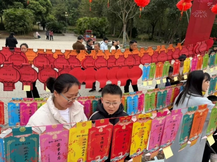 活动在喜庆祥和的氛围中拉开帷幕。广场上悬挂着上千条红色谜条,谜面内容涵盖传统文化、诗词歌赋、生活常识、丰都地域特色等,既具知识性又富趣味性。市民们或凝神思索,或三五讨论,或举家齐上阵,现场欢声笑语不断,洋溢着浓浓的节日气息。