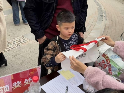 本次活动特别设置了猜谜记录卡和阶梯式兑奖机制,参与者每猜中两条灯谜即可获得相应积分,兑换棒棒糖、定制手提袋、汤圆等节日礼品。据统计,活动当天共有八十余位市民凭借智慧与巧思成功猜中谜底,喜获奖励。一位带着孩子前来参加活动的家长表示:“既能动脑筋猜谜,又能领到汤圆回家过节,这样的元宵节特别有意义!”