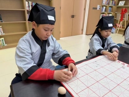 活动伊始,孩子们身着传统服饰,在老师的引导下走进“春分”的世界。从“昼夜平分”的天文奥秘,到“玄鸟至、雷乃发声、始电”的三候变化,再到立蛋、放纸鸢、吃春菜等传统习俗,老师以生动有趣的讲解,将节气知识娓娓道来。孩子们还齐声朗诵了《春分》、《村居》等经典诗词,在朗朗书声中感受古人对春天的赞美。