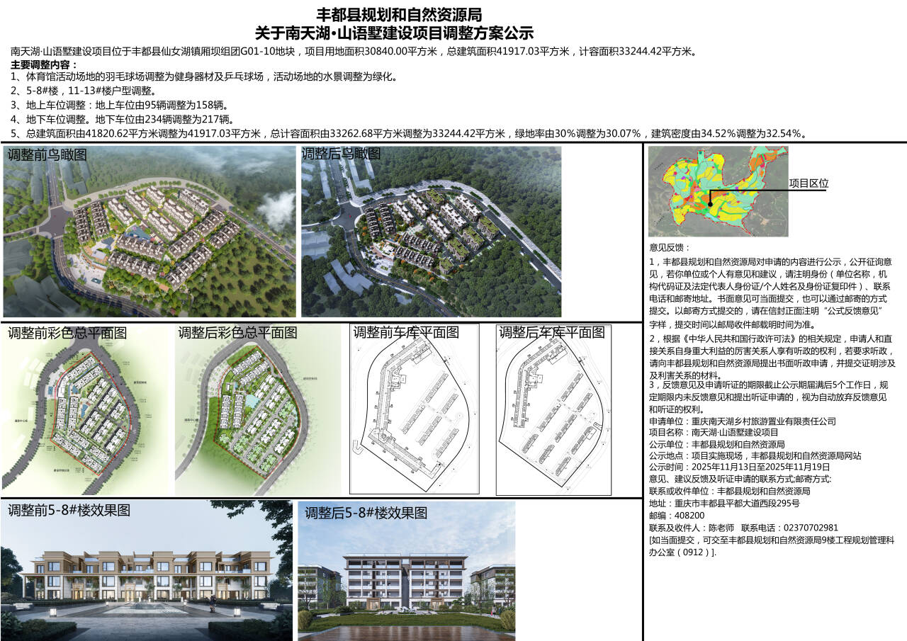 丰都县规划和自然资源局关于南天湖·山语墅建设项目调整方案公示