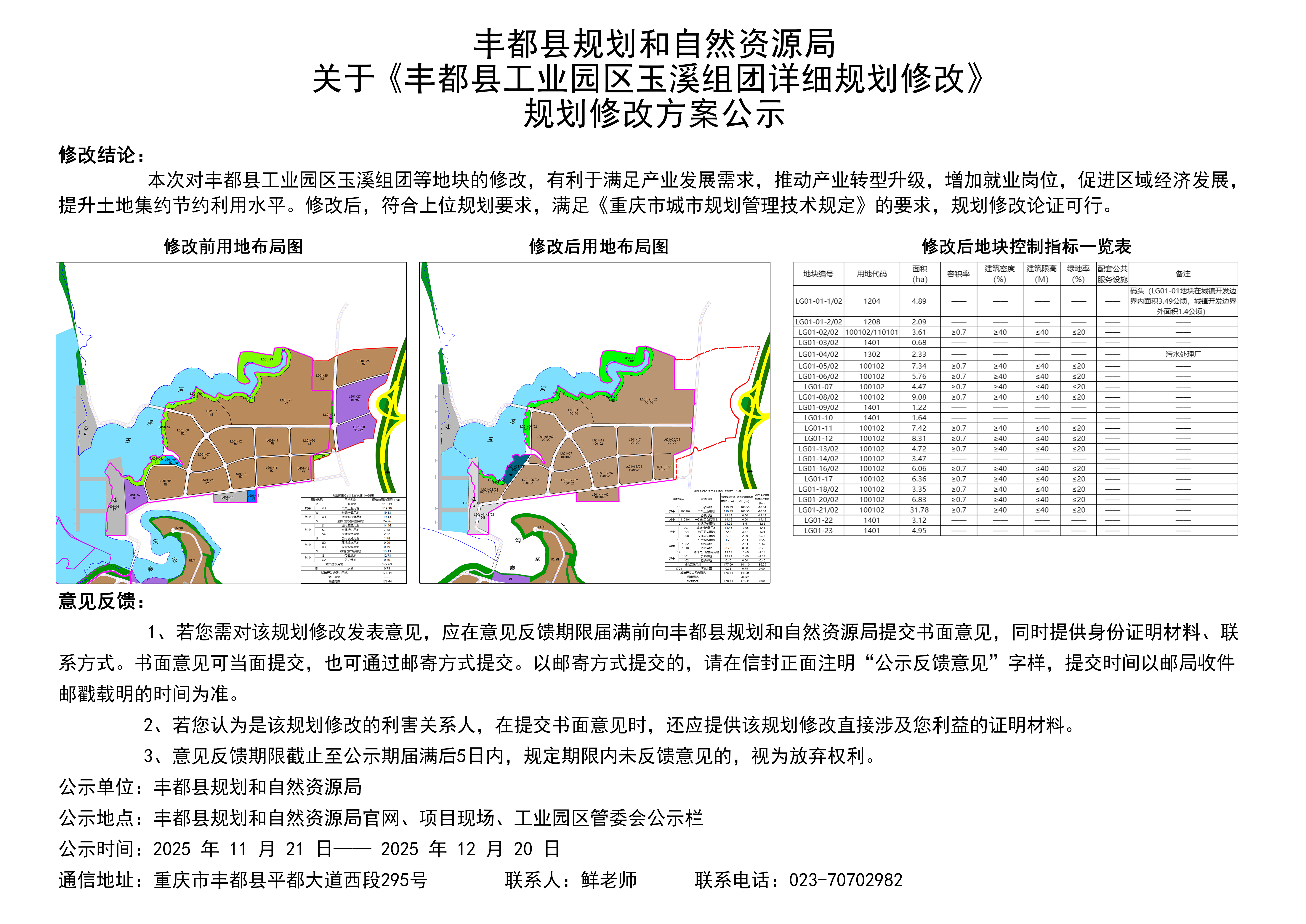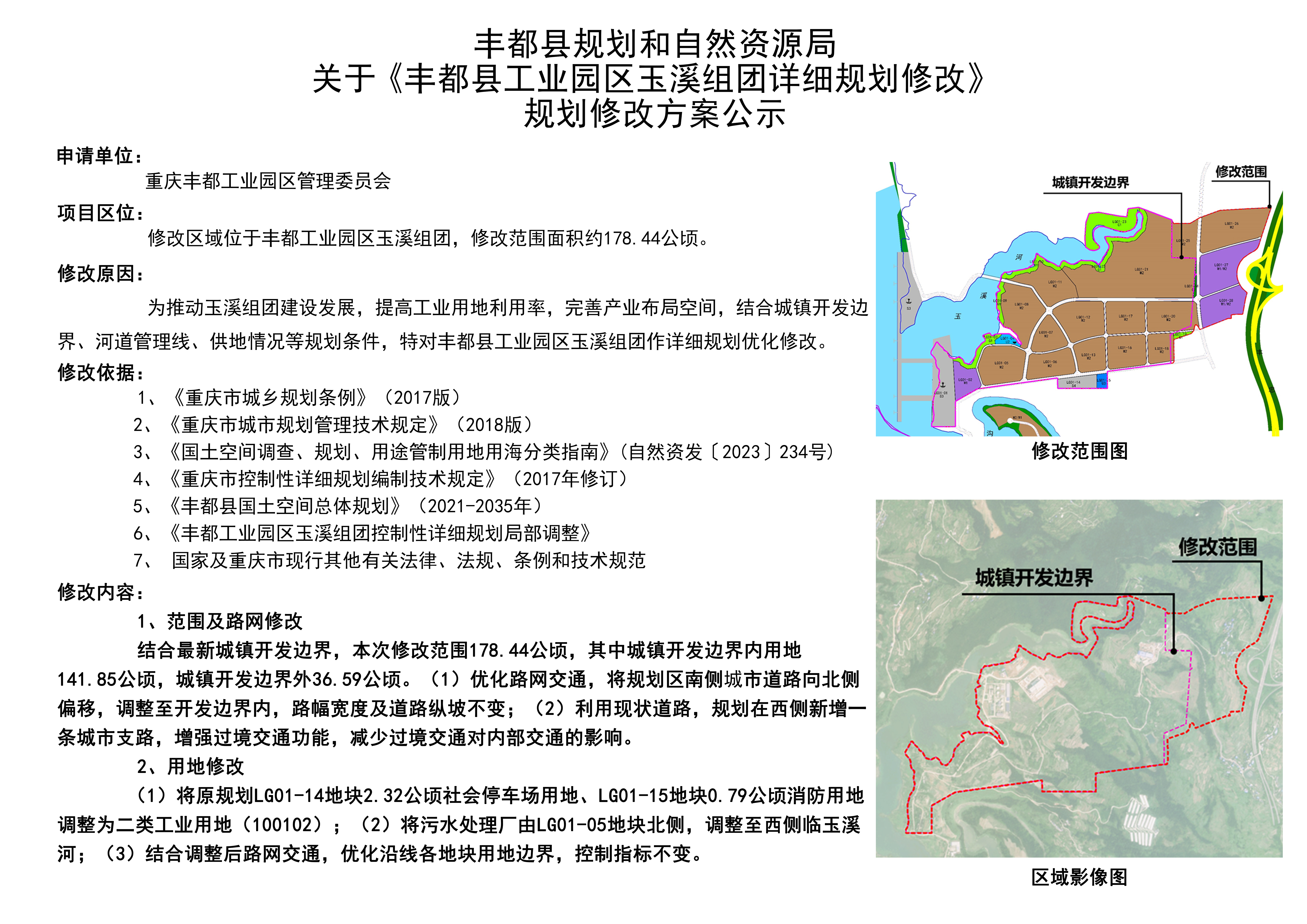 丰都县规划和自然资源局关于《丰都县工业园区玉溪组团详细规划修改》规划修改方案公示