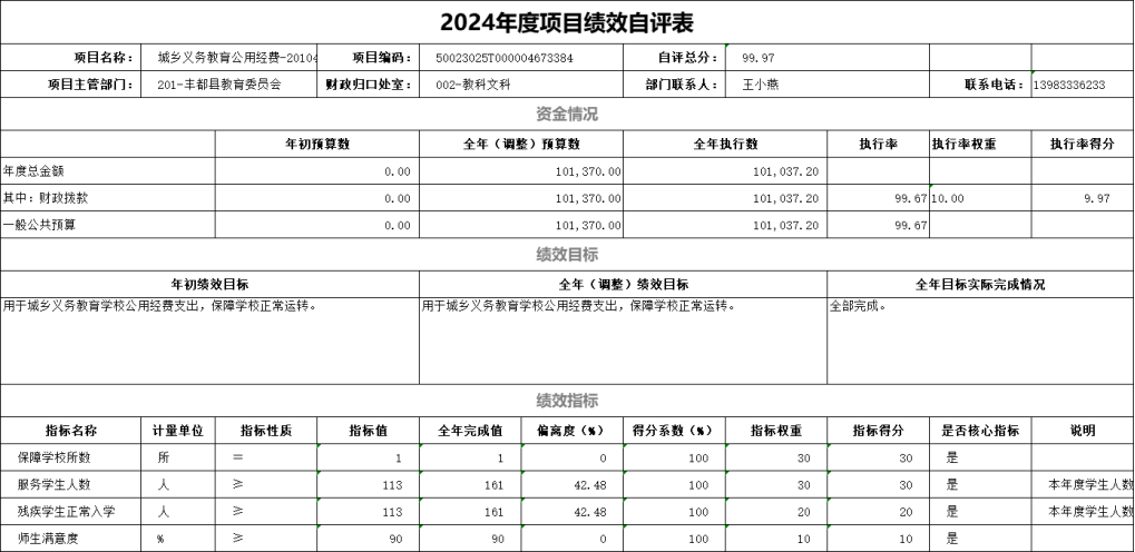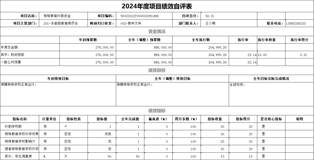 我部门(单位)对17个二级项目开展了绩效评价,涉及财政拨款项目资金238.36万元,已完成全年绩效目标。