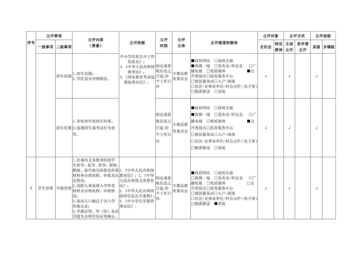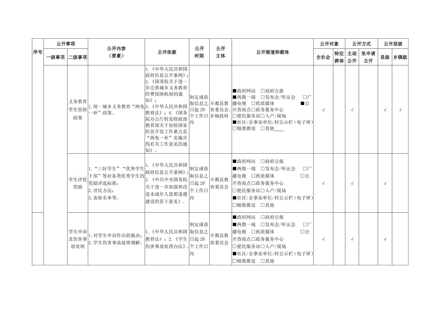 义务教育领域基层政务公开标准目录(2026年版)