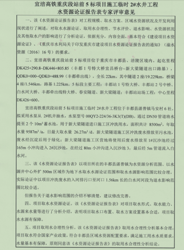 附件:宜涪高铁重庆段站前5标项目施工临时2#水井工程水资源论证报告表专家评审意见