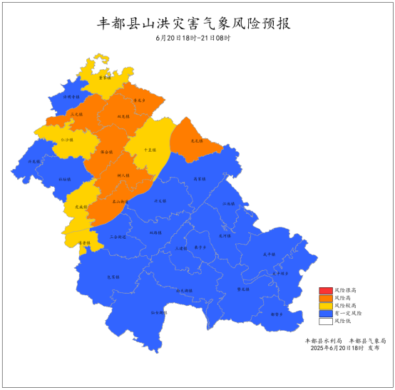 丰都县水利局和丰都县气象局6月20日18时联合发布山洪灾害风险提示: