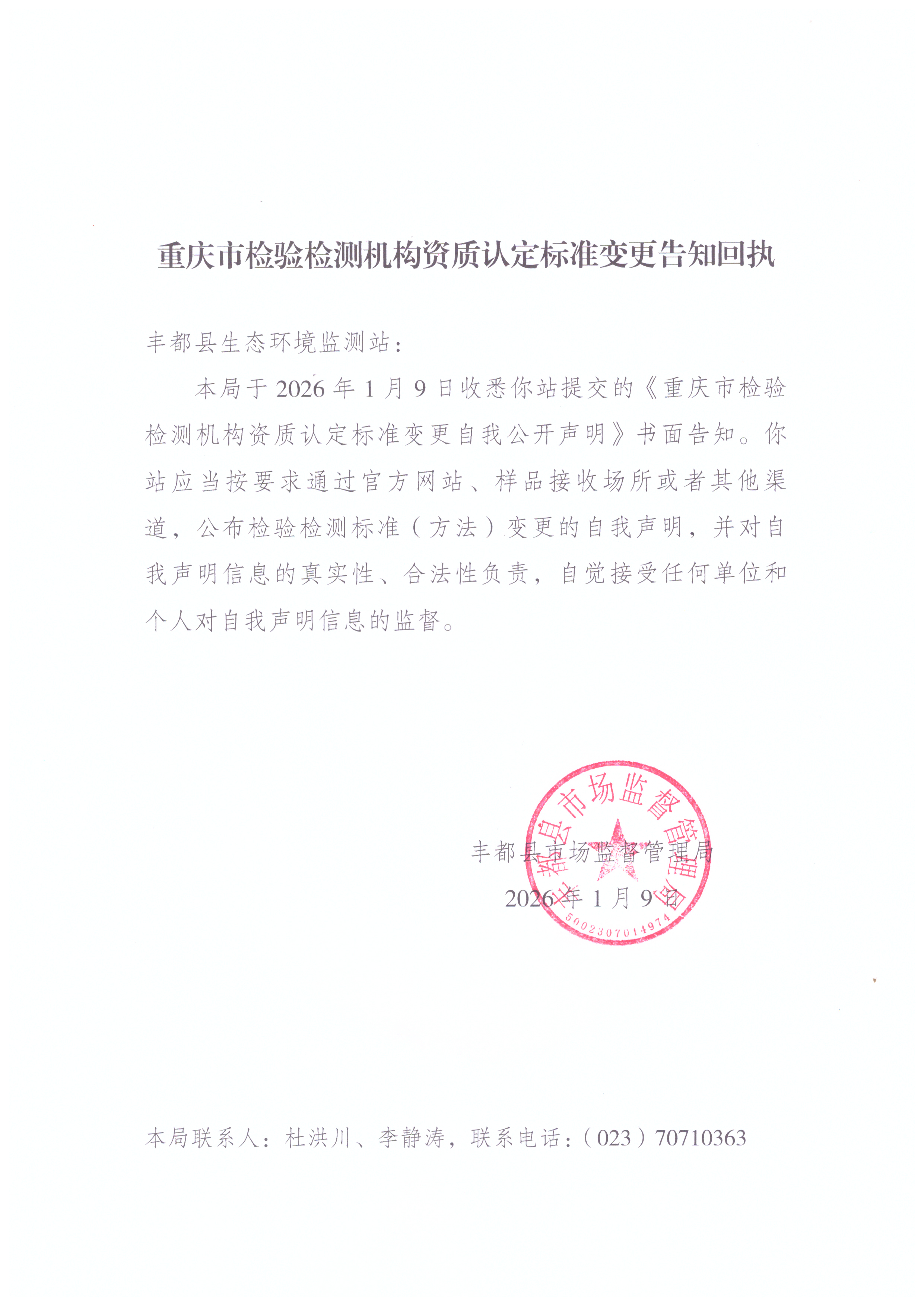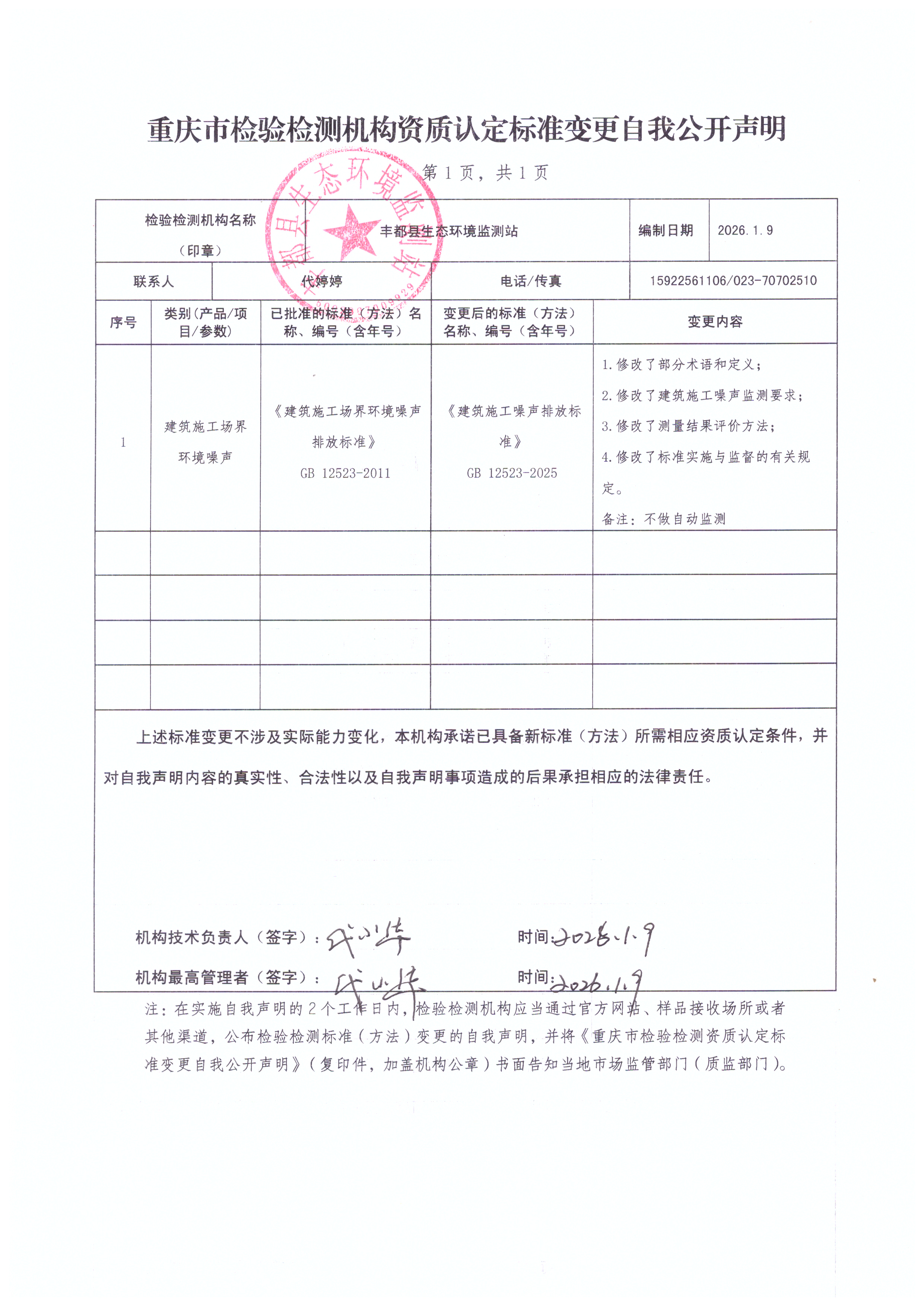 丰都县生态环境监测站关于建筑施工噪声标准变更的自我公开声明