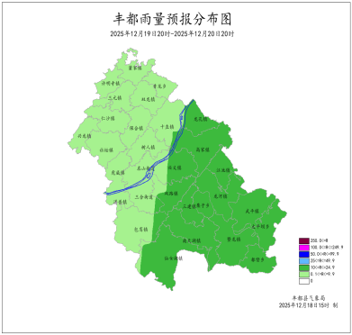 2025年12月17日16时至12月18日16时我县多云间晴。最低气温2.8 (太平坝)~11.3℃,最高气温9.1~20.4℃(江池)。丰都国家基本站最低气温9.6℃,最高气温17.0℃。
