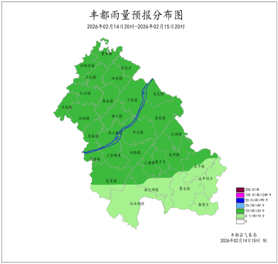 2026年2月13日16时至2月14日16时我县多云间晴。最低气温-6.1 (太平坝)~7.6℃,最高气温15.4~24.6℃(江池)。丰都国家基本站最低气温6.6℃,最高气温18.0℃。