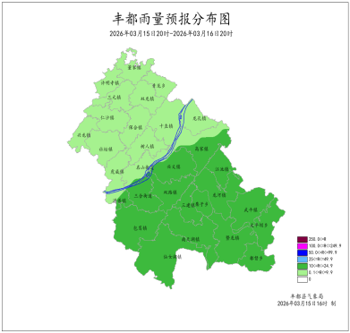 2026年3月14日16时至3月15日16时我县中到大雨。最大降雨量为29.4mm(三建蔡森坝);最低气温2.5(南天湖景区)~10.8℃,最高气温6.8~16.9℃(三建)。丰都国家基本站雨量12.9mm,最低气温9.1℃,最高气温14.1℃。