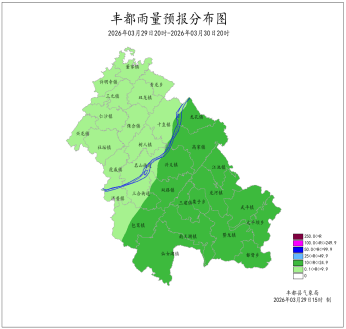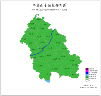2026年3月28日16时至3月29日16时我县小雨,局地中雨。最大降雨量为11.6mm(保合新院子);最低气温4.7 (南天湖景区)~14.8℃,最高气温8.7~23.6℃(龙孔凤凰村)。丰都国家基本站雨量2.8mm,最低气温13.7℃,最高气温20.7℃。