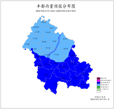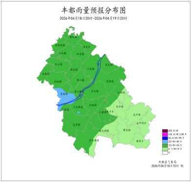 2026年4月17日16时至4月18日16时我县多云到晴。最低气温5.8 (南天湖景区)~17.8℃,最高气温16.3~33.4℃(仙女湖黄沙)。丰都国家基本站最低气温16.0℃,最高气温29.3℃。