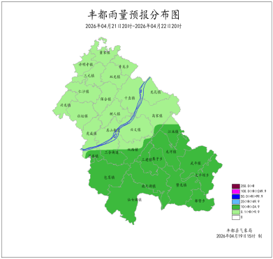 2026年4月18日16时至4月19日16时我县多云间晴。最低气温7.9 (太平坝)~22.4℃,最高气温16.7~34.6℃(三元)。丰都国家基本站最低气温19.0℃,最高气温29.6℃。