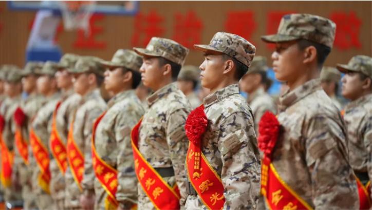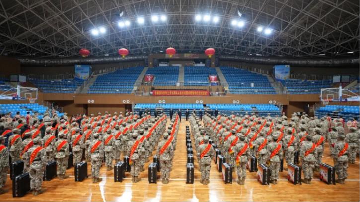欢送仪式现场,全体新兵一身戎装、身披绶带,精神抖擞、眼神坚定,脸上洋溢着对军营生活的美好憧憬。他们将带着家乡亲人的祝福和期盼踏上军旅征程,奔赴全国各地,为祖国强军事业注入新鲜血液。