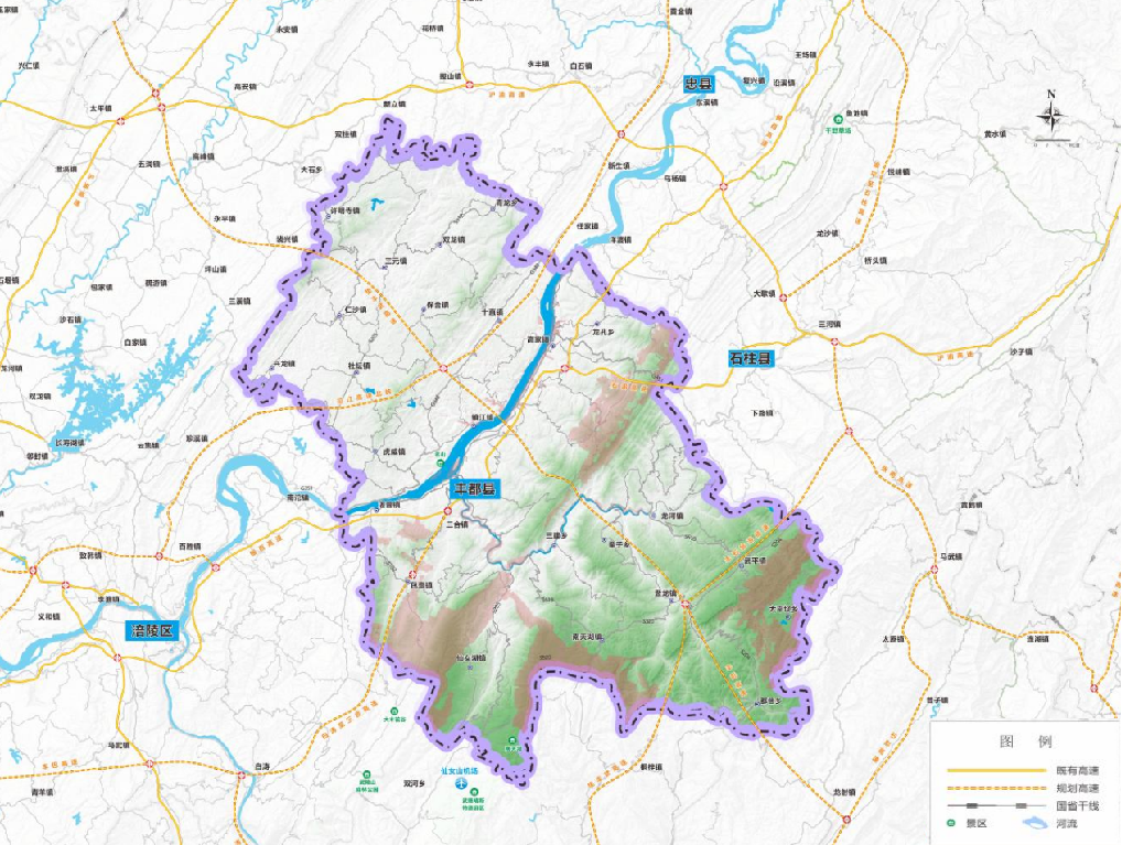 —公路方面。丰都境内高速公路仅有一条东西走向的沿江高速,位于沿江南岸,对沿江北岸的乡镇产业带动能力不足。同时,快速过江通道较少,制约江南江北联动发展。相较于周边区县忠县(3条)、涪陵(3条)等,丰都对外高速公路通道数量明显不足,周边互联互通水平较低。