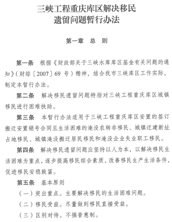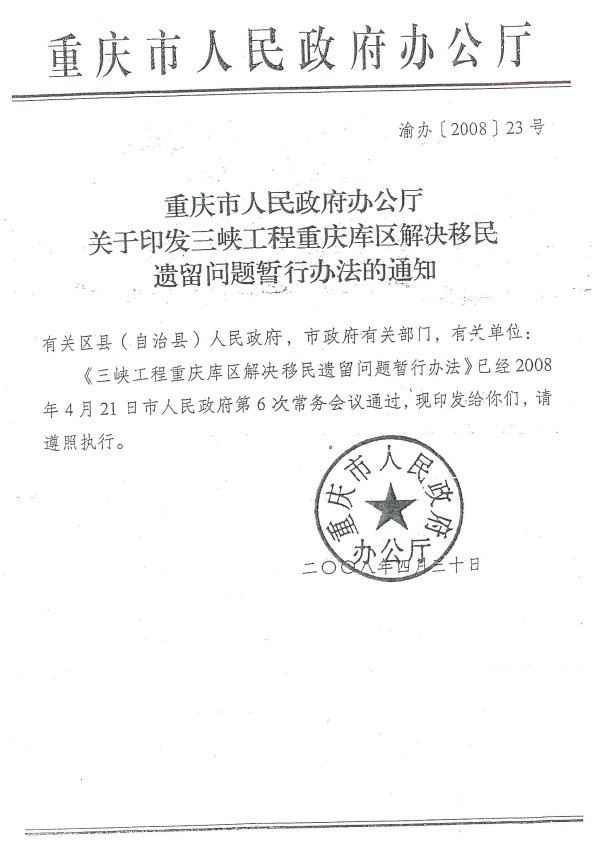 重庆市人民政府办公厅关于印发三峡工程重庆库区解决移民遗留问题暂行办法的通知