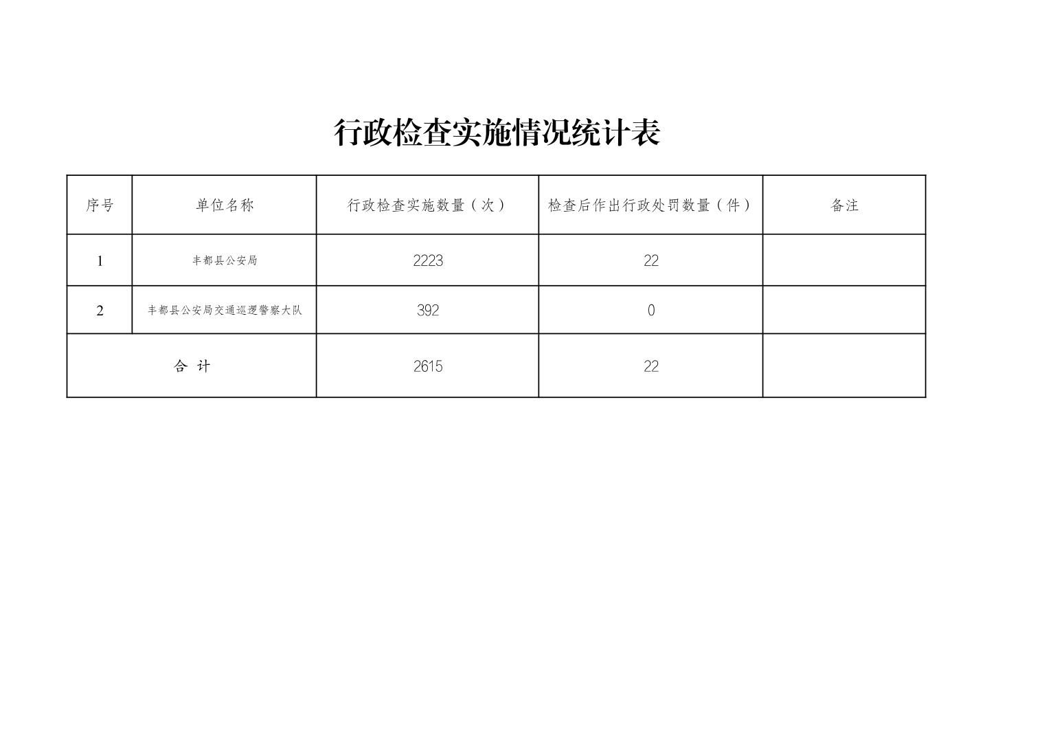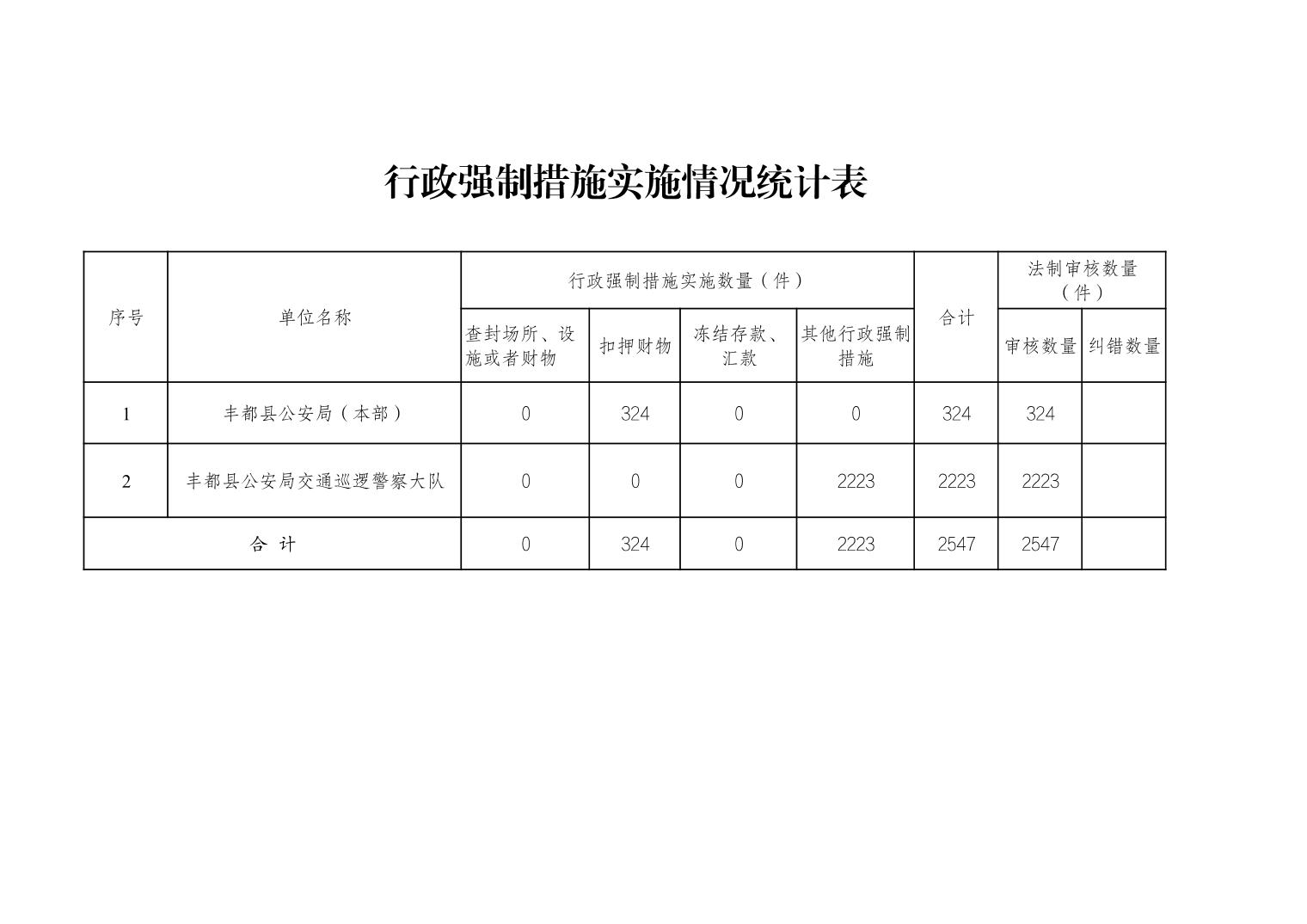 丰都县公安局2025年度行政执法数据统计表