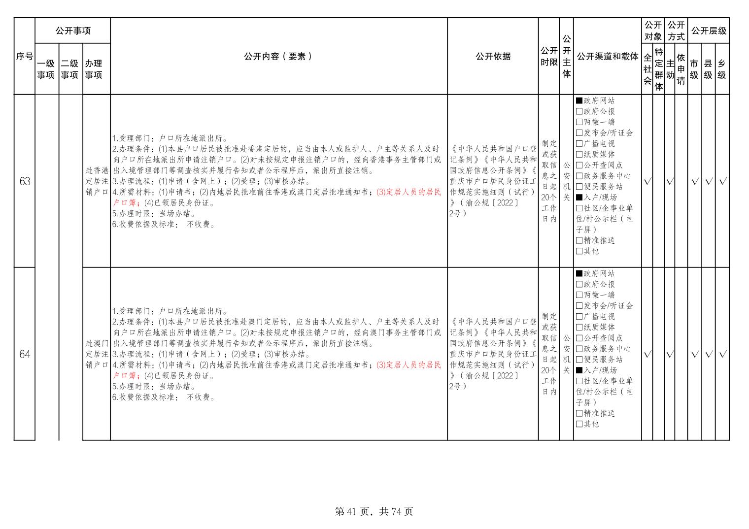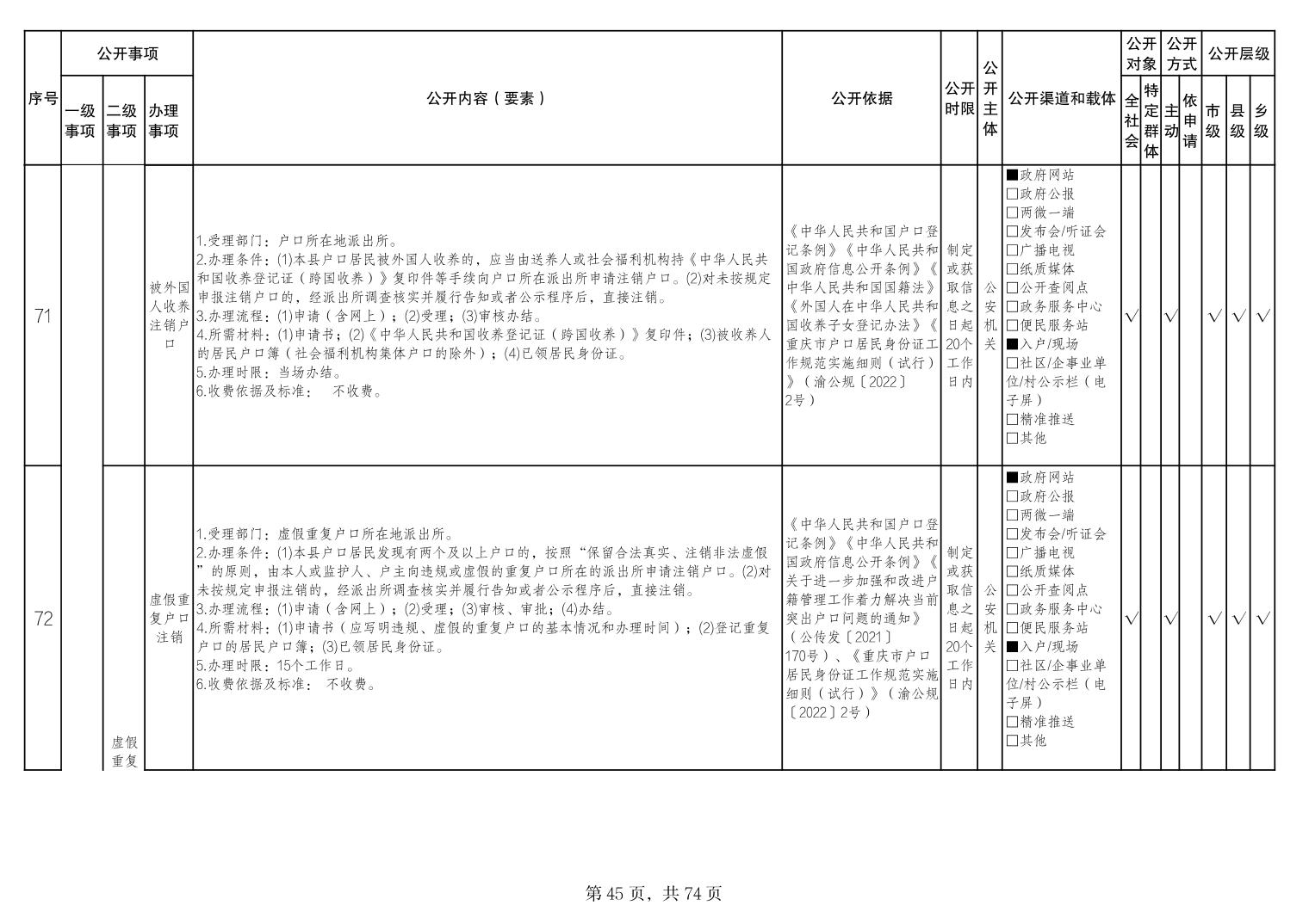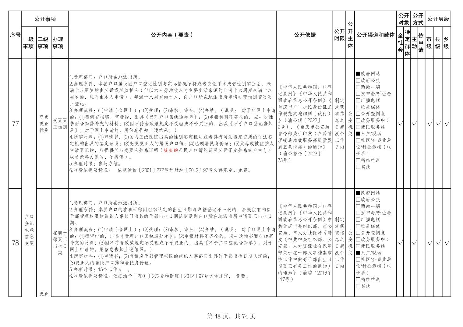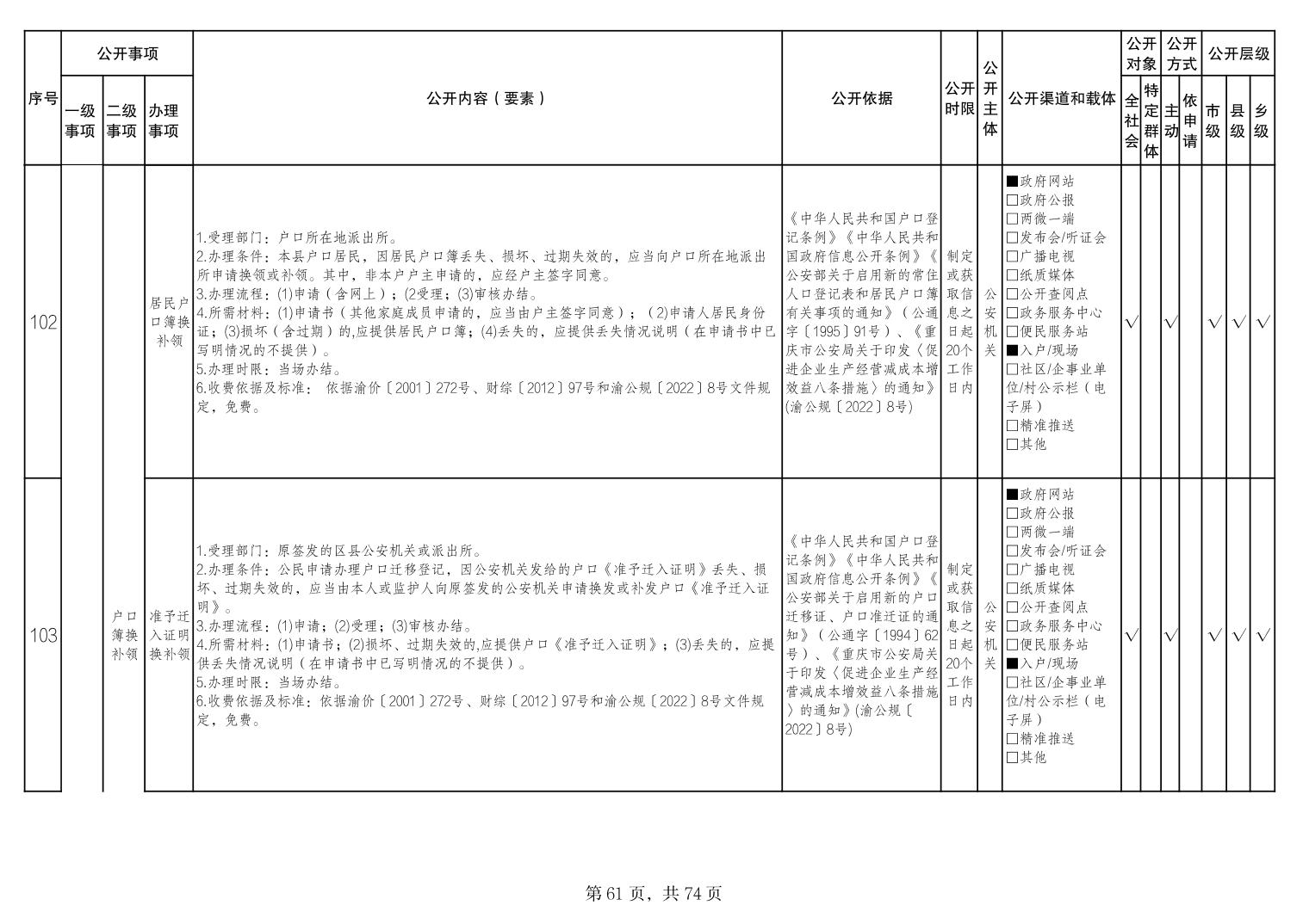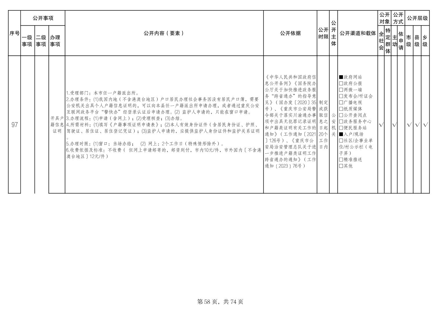 重庆市丰都县户籍管理领域基层政务公开标准目录