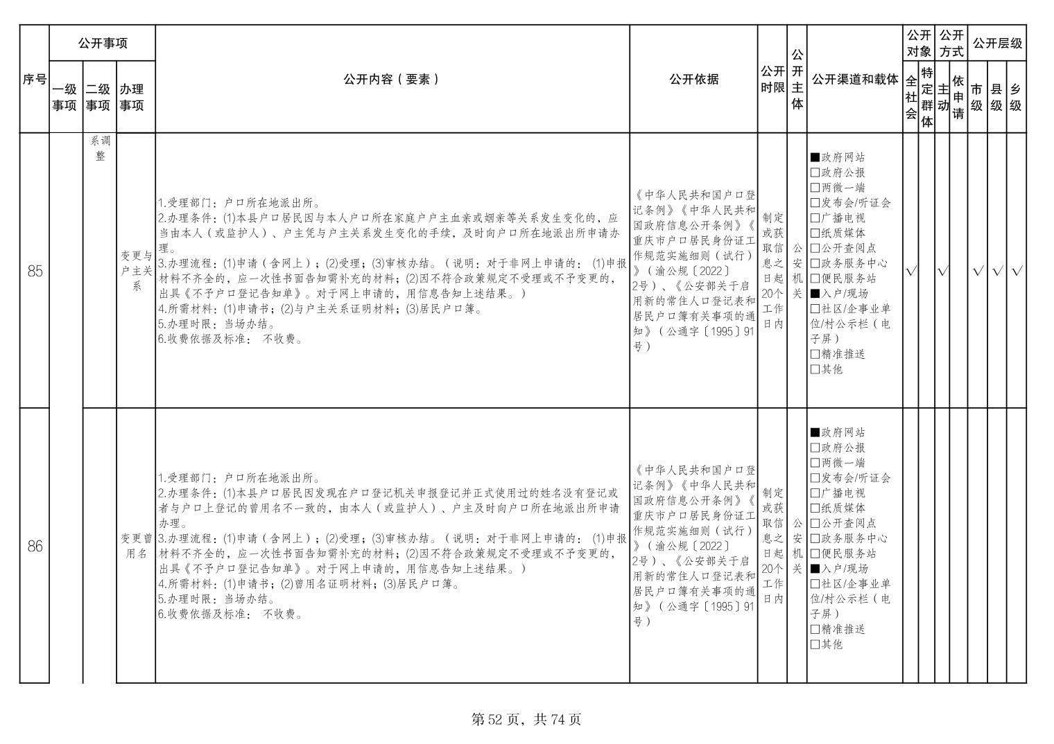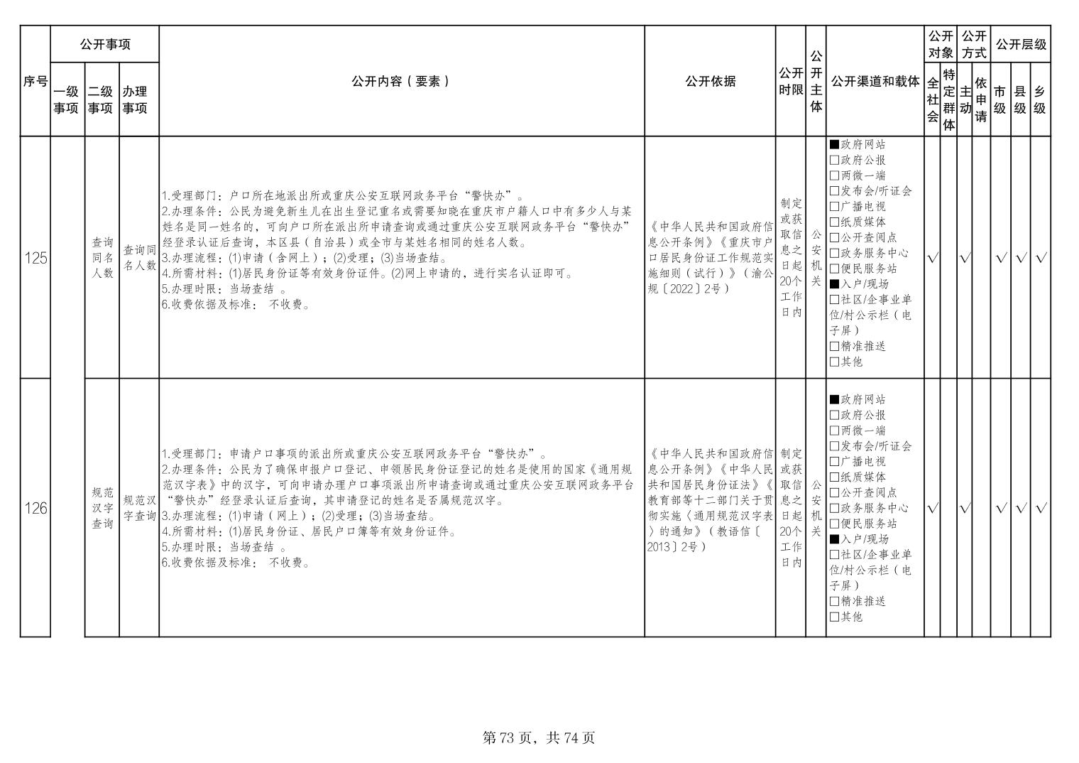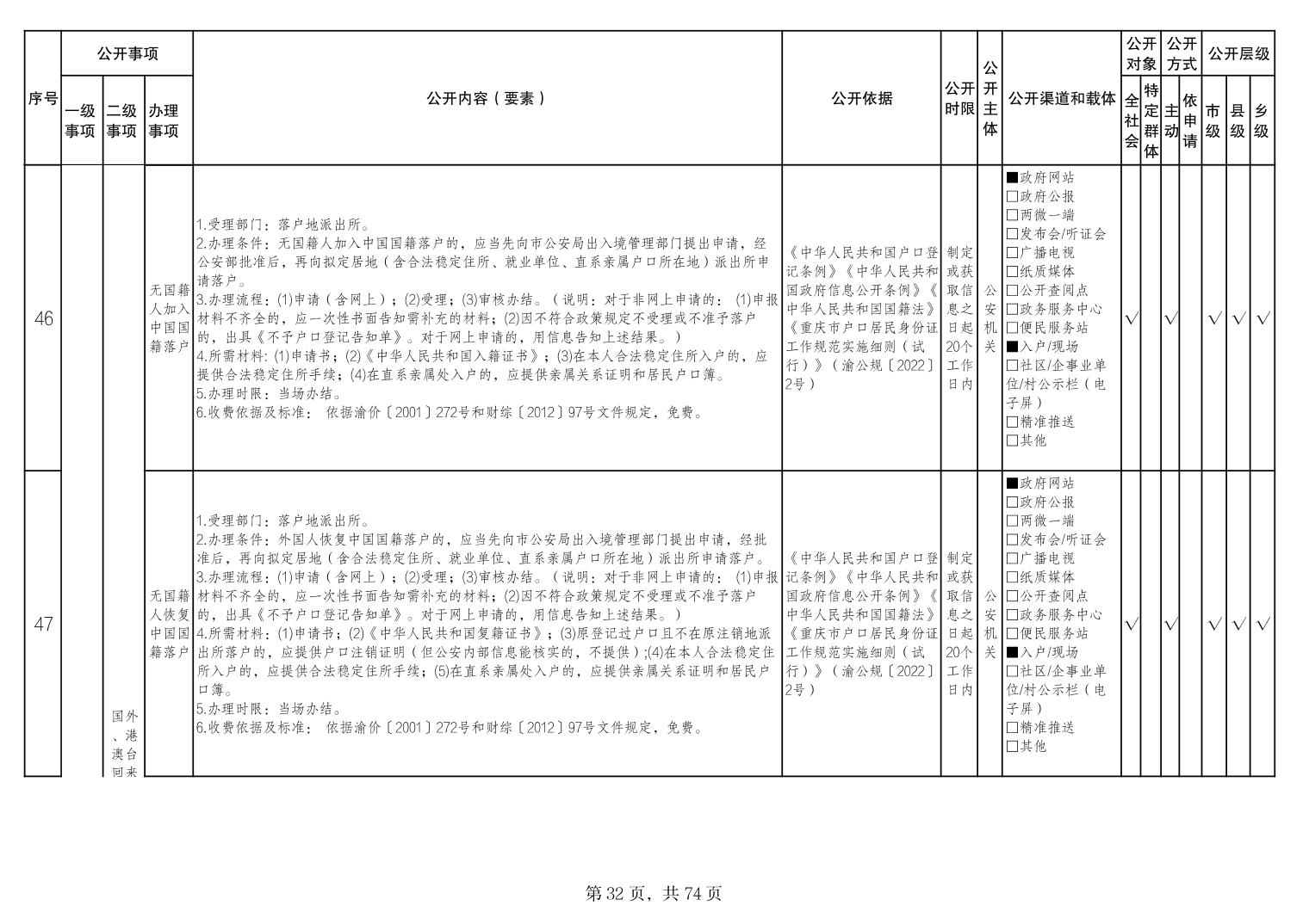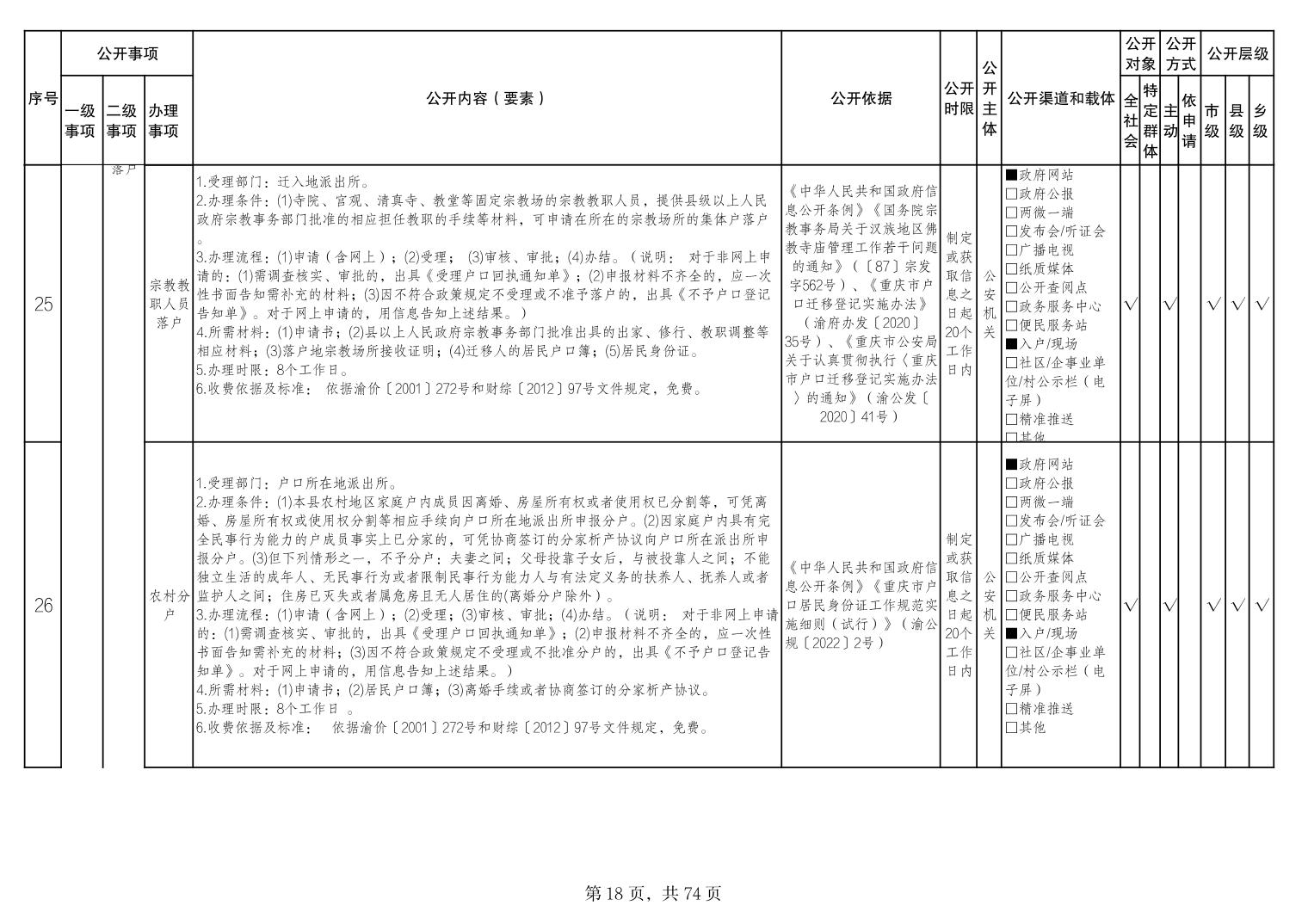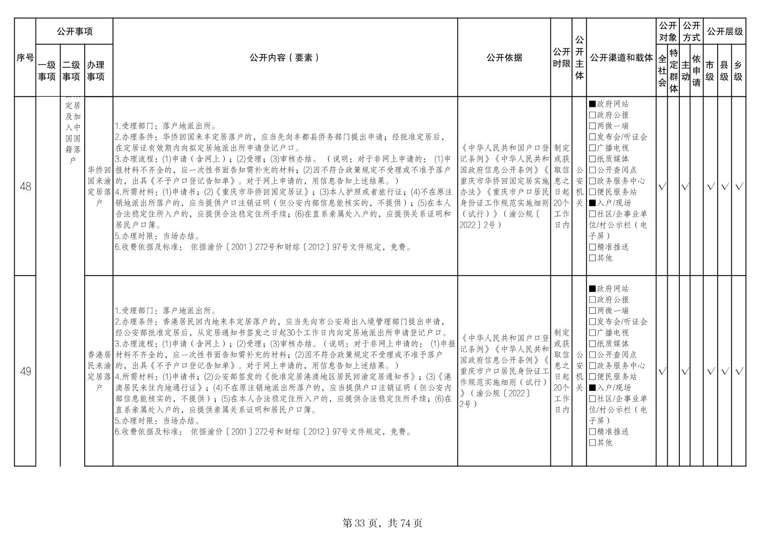 重庆市丰都县户籍管理领域基层政务公开标准目录