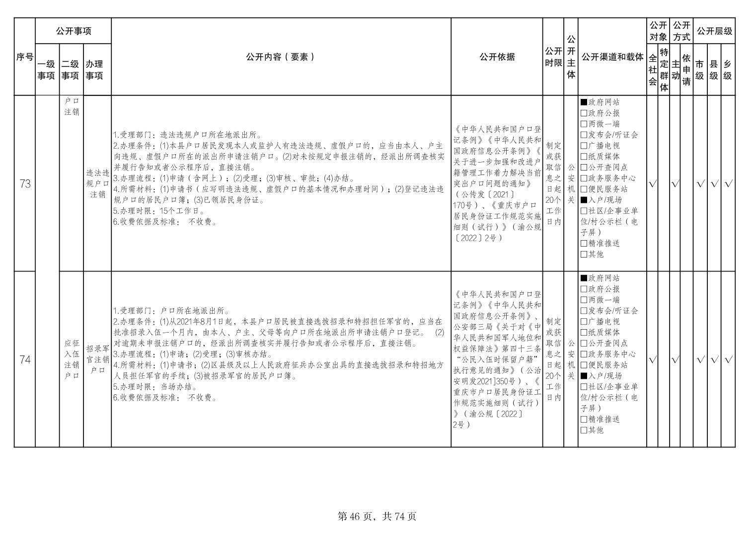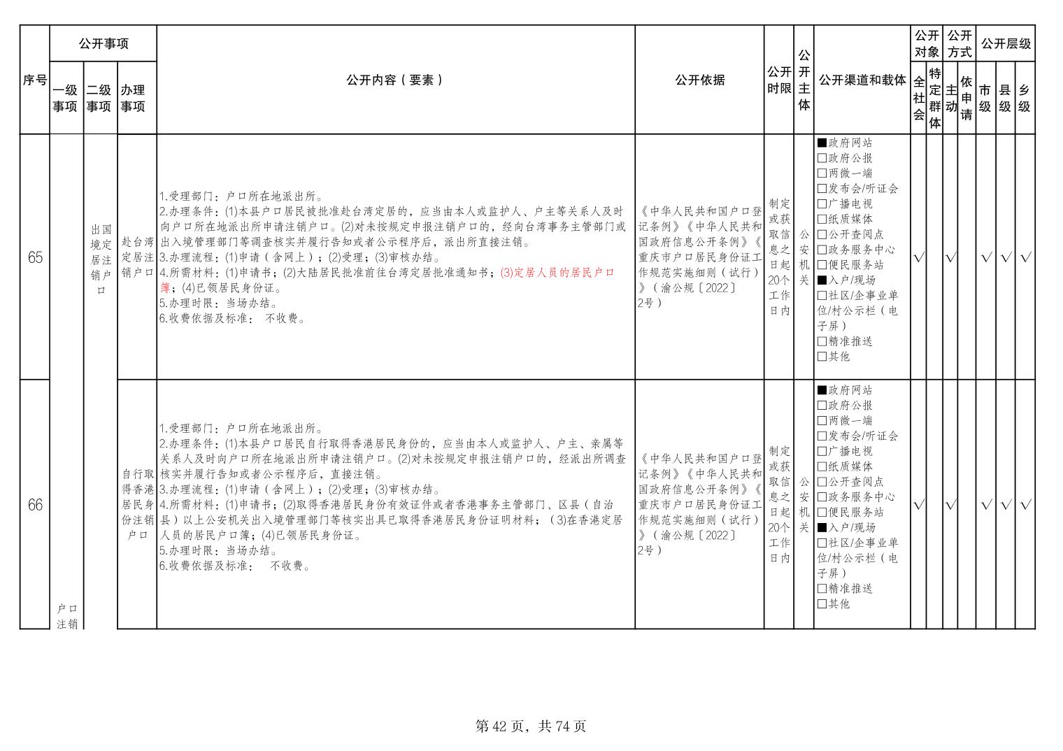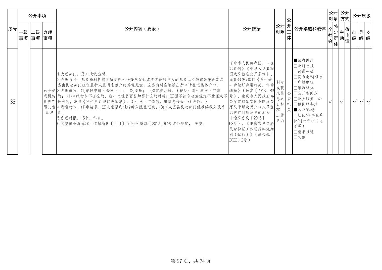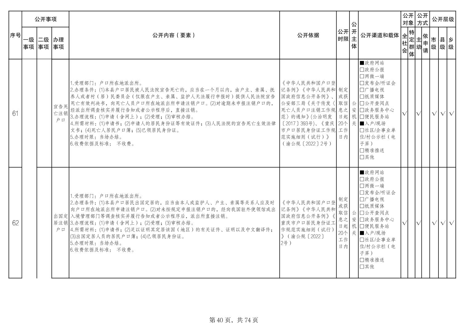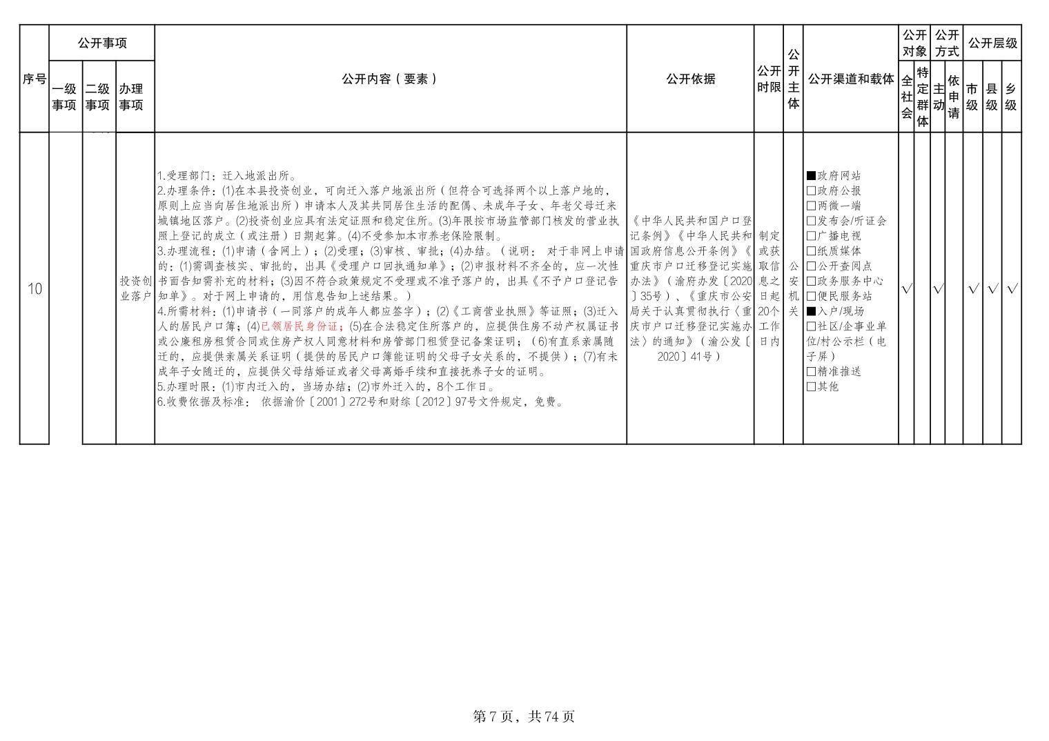 重庆市丰都县户籍管理领域基层政务公开标准目录